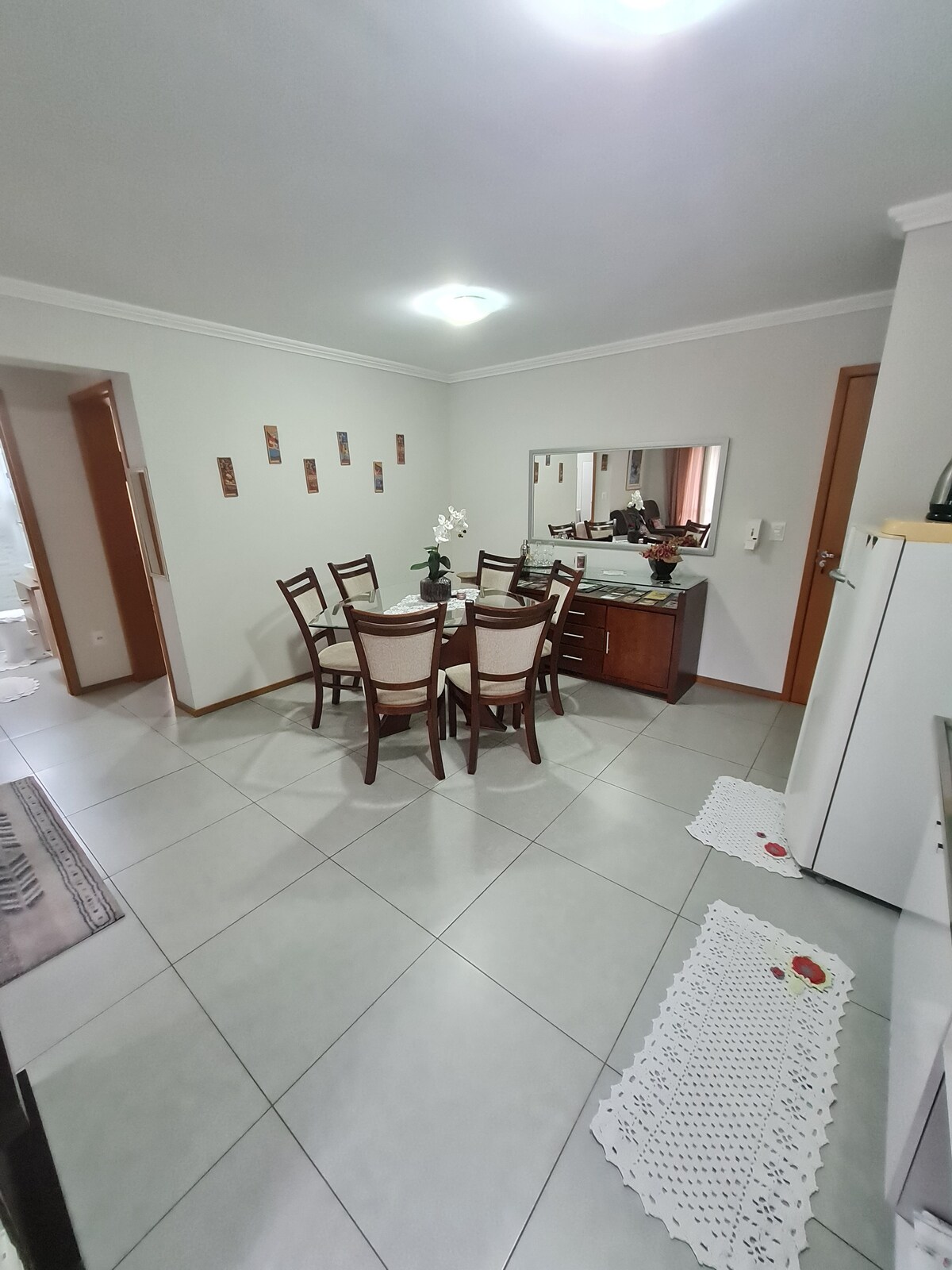 Sua família vai estar perto de tudo pois se localiza próximo a BR 470 sendo menos de 10 min do Centro e da Vila Germânica. O ambiente contará com 1 quarto de casal com suíte. 1 quarto com 2 camas de solteiro lado a lado e 1 colchão extra na sala. A cozinha é completa, internet boa, vista é excelente! Só pedimos que não seja barulhento além da conta pois o prédio é muito silencioso o que irá te garantir uma ótima noite de descanso. Temos maquina de secagem rápida. Espere um mimo quando chegar