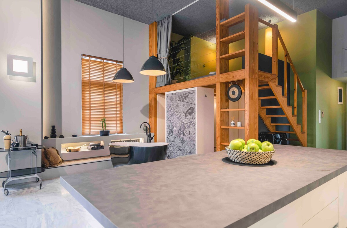 Choose this place if you are looking for a real Athenian experience combined with high-end hospitality in a fully renovated space. The Market Loft is located in the heart of the historical center, nearby major metro stations and walking distance from all the sights and attractions. It has a unique city view from the mountains to the sea, including a grand plan of the Acropolis and Lycabettus hill. It is designed minimally with high-end finishes, luxurious aesthetics and brand new equipment.