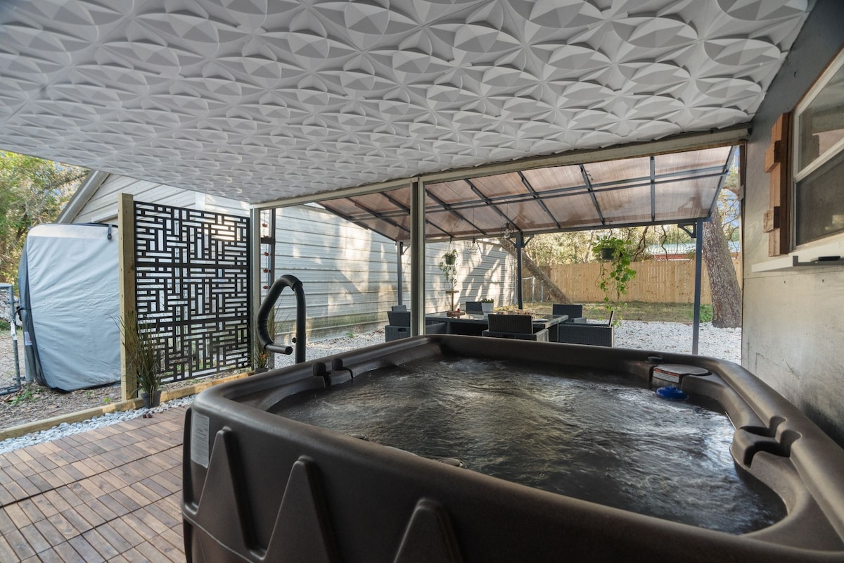 Idealna mała kryjówka podczas zwiedzania okolicy Tampa Bay. Ciesz się bujaniem na werandzie, spędź dzień w spa, rozkoszując się sauną na podczerwień, weź udział w treningu lub jogi. Zanurz się w jacuzzi lub skorzystaj z pełnego baru kawowego, zrelaksuj się na huśtawce i obserwuj, jak kozy i inne zwierzęta się bawią. Podkręć atmosferę i gotuj w BBQ Hut wyposażonej w Blackstone z frytkownicą beztłuszczową. Dostępny jest piec do pizzy. Wieczory relaksuj się przy palenisku, aby zjeść trochę prażonych pianek i spokojnie spędzić czas.