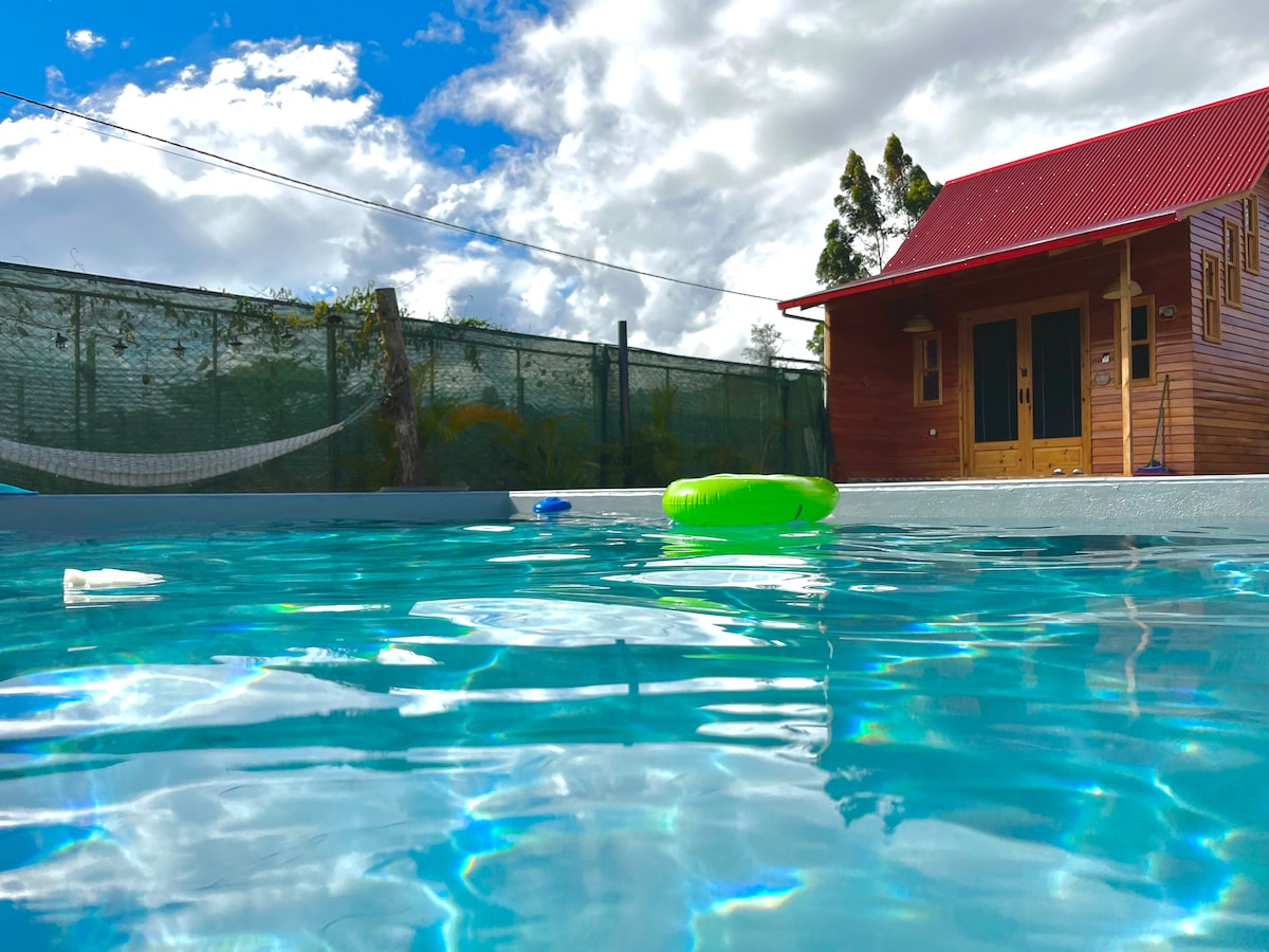 10 min od Oxapampa WYNAJMIJ 1 PIĘTRO KABINY Z niezależnym dostępem (właściciele mieszkają na drugim piętrze, szanujemy Twój spokój i przestrzeń) Duży pokój z łóżkiem 2 plz, telewizorem i 1 sofą, łazienka z toaletą z ciepłą wodą, wyposażona kuchnia, 2-palnikowa kuchenka gazowa, taras z rustykalną jadalnią. Domek znajduje się przed basenem z wodą, taras ma mały dok i można podziwiać wspaniały widok Szybkie połączenie internetowe ze światłowodem.