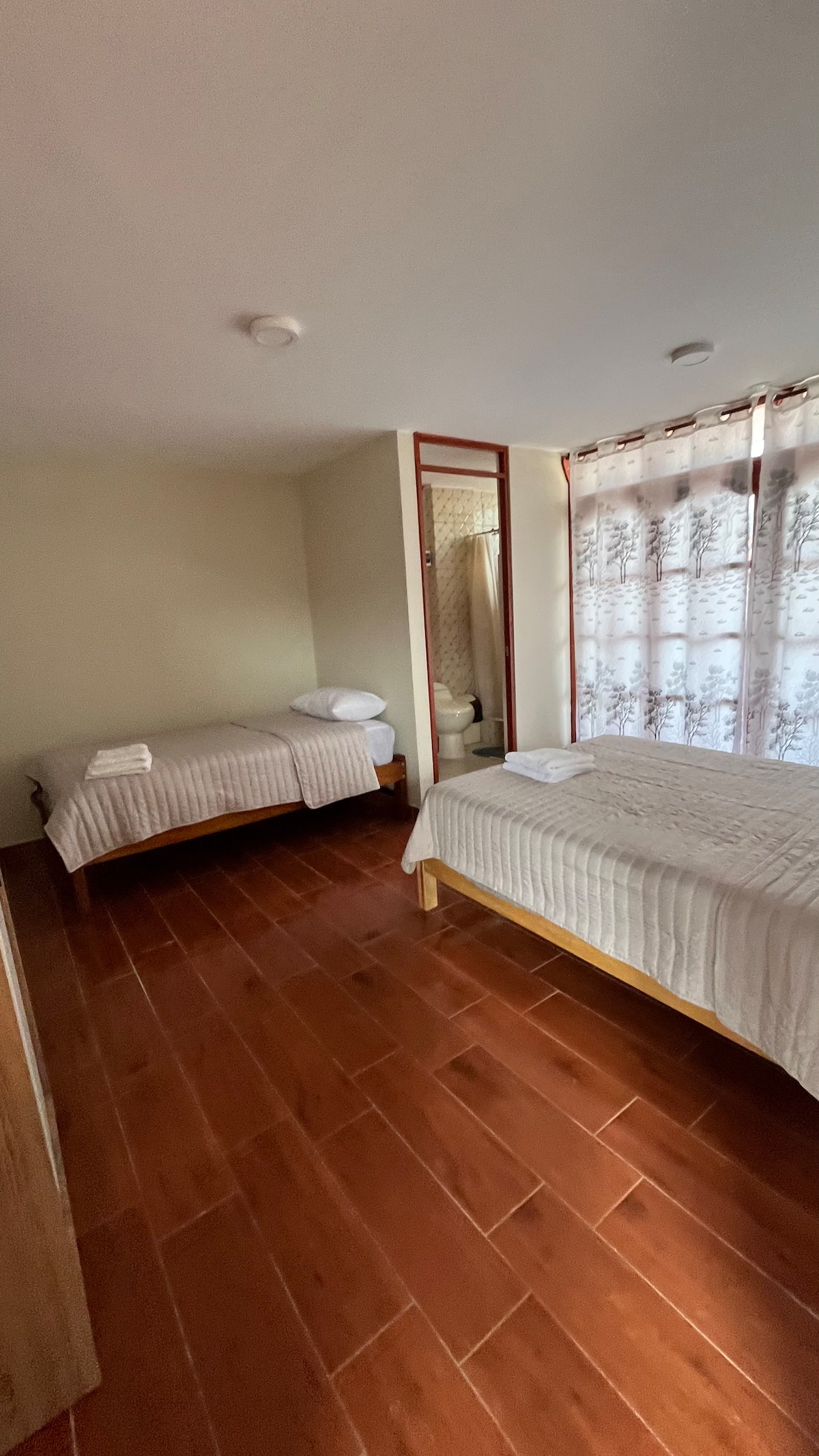 OXAWASI te da la bienvenida a Oxapampa. Capacidad de 1 a 3 personas. 2 habit 2 baños, una cafeteria en Terraza Tu estadía en un 3er piso para disfrutar una mejor vista a la montaña. * Una Habitacion matrimonial de ensueño y baño incluido * Una Habitacion simple y baño independiente * UNA TERRAZA VISTA A LA MONTAÑA, en la que instalamos una CAFETERIA con una pequeña cocinita. Mueble, sillas y mesita, para que disfrutes tu RELAX plenamente viendo la NATURALEZA en pleno
