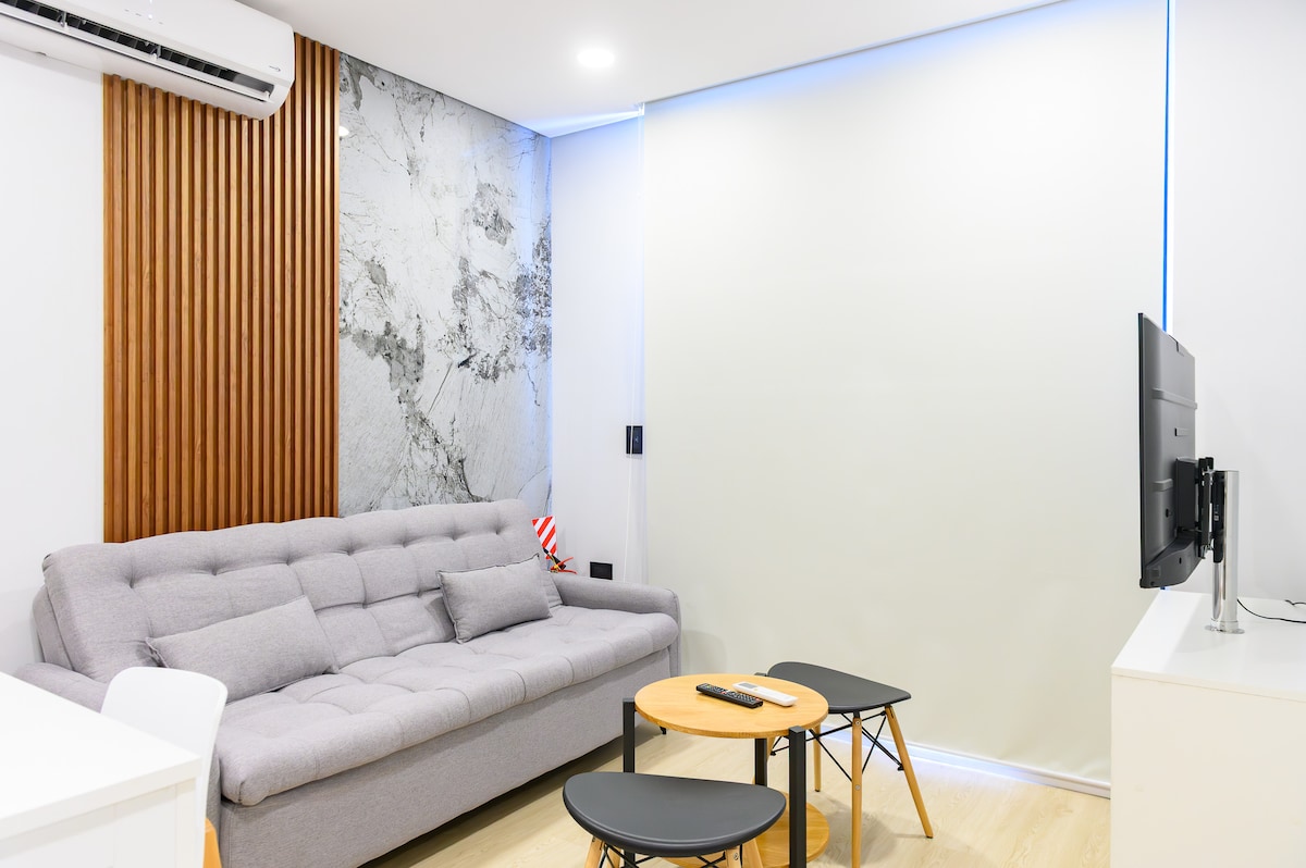 Stylowe i wygodne mieszkanie łączy w sobie nowoczesność i komfort. W odległości spaceru znajduje się centrum handlowe Del Sol & Gallery. Ciesz się bezpieczną, cichą i jasną przestrzenią, szybkim Wi-Fi, pościelą premium, wyposażoną kuchnią i najlepszymi udogodnieniami, aby poczuć się jak w domu. Idealne i gotowe na lato: basen, siłownia i taras. Otoczone kawiarenkami, sklepami i supermarketami, jest idealnym miejscem na wypoczynek, pracę lub cieszenie się miastem w dobrym stylu.
