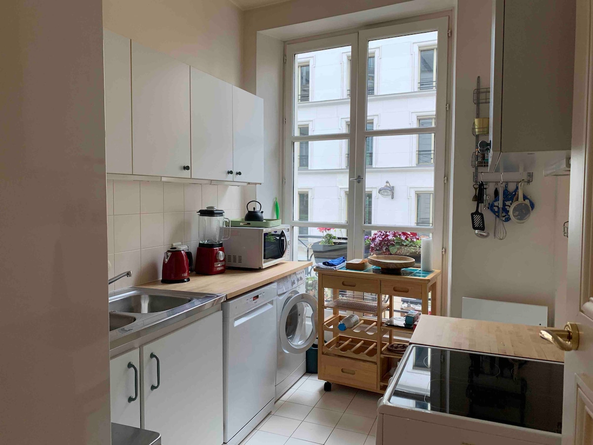 Appartement cosy, très calme de 60m2, situé au centre de Paris, près du métro Lepeletier, il offre tout le confort pour un séjour d'exception à Paris. En plein cœur de Paris, dans un quartier animé, l'OPERA, MONTMARTRE, THEATRES, LES GALERIES LAFAYETTE, LE PRINTEMPS, LA MADELEINE, LA PLACE DE LA CONCORDE, … Ce logement de charme est idéal pour des vacances en famille ou entre amis. Logement accueillant 4 personnes. À partir de la troisième personne, nous facturons 30€/nuit et par personne.