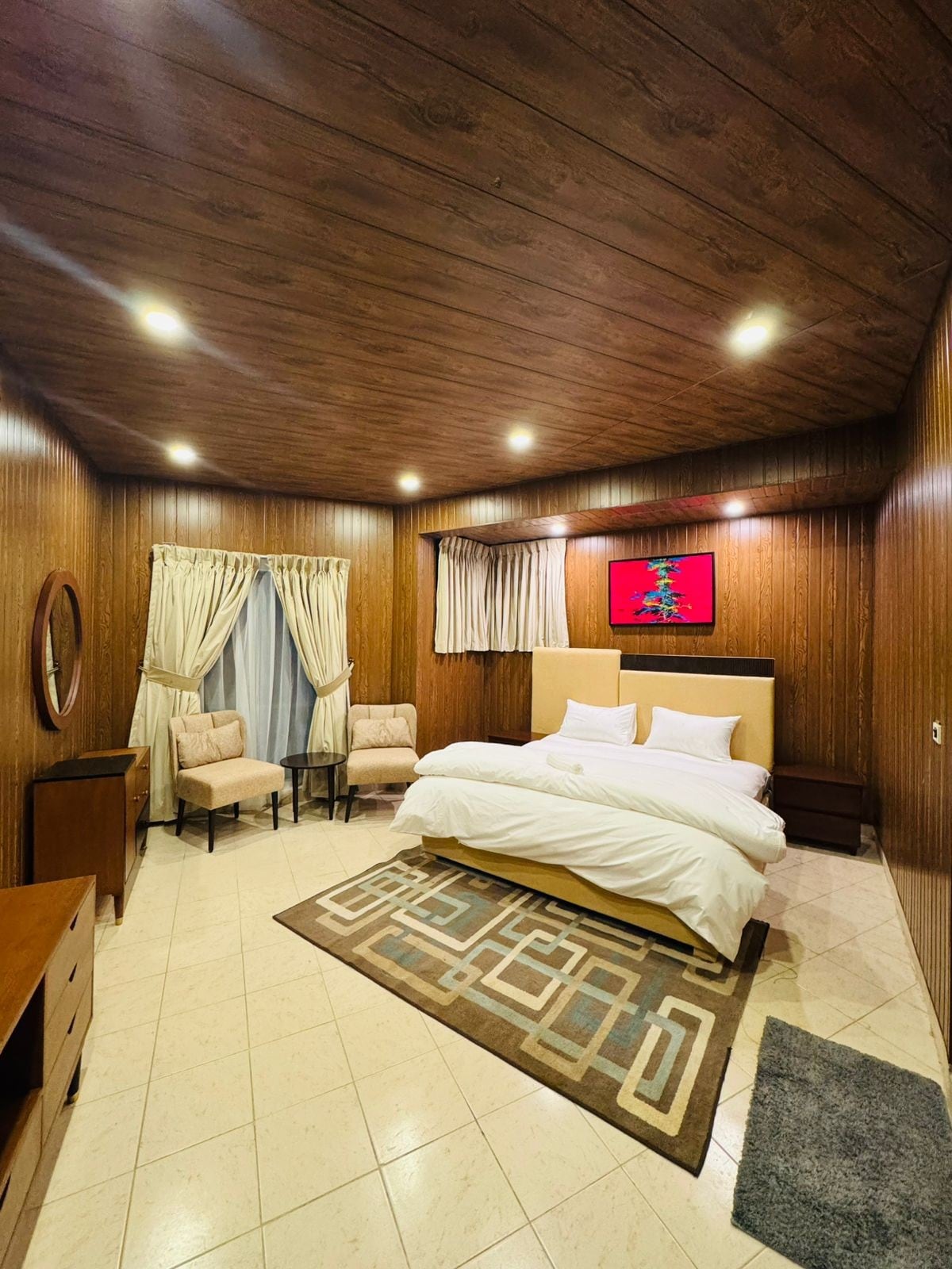 Witaj w luksusowym domu z 2 sypialniami w Murree! • 🌄 Panoramiczne widoki i etniczny ogród zimowy • 📍 Wszystkie główne atrakcje, kawiarnie i restauracje w odległości 10 minut • 🍽 W pełni wyposażona kuchnia • 🛏 Eleganckie sypialnie, przytulny salon • Dostęp do 🚗 głównej drogi i parking ogrodzony • ❄ Odśnieżanie co 15 minut, dostępne łańcuchy śniegowe • 👨💼 Opiekun całodobowy • 🥐 Szef kuchni na miejscu • ☕ Subway, Dunkin' Donuts w odległości spaceru 📐 • 260 m² z tylko 2 sypialniami – wyjątkowo przestronne