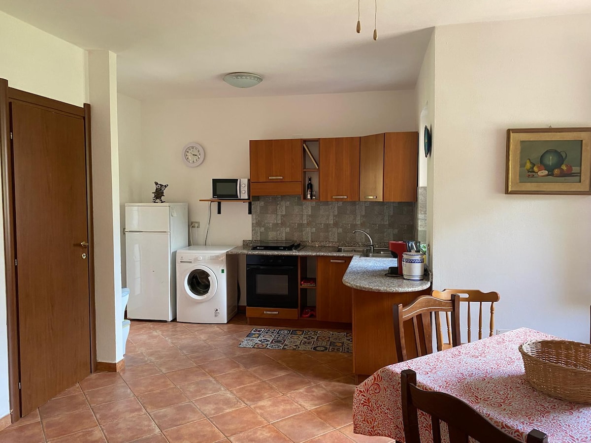 Nowy apartament z prywatną werandą i wspaniałym widokiem na ogród. Sypialnia dwuosobowa z szafą, główna łazienka z podwójnym prysznicem, toaleta, duży salon z aneksem kuchennym. Designerskie meble z kilkoma akcentami sardyńskich mebli i rzemiosła. Rezydencja otoczona zielenią znajduje się zaledwie 10 minut od centrum miasta, w pobliżu głównych usług i plaż, ale jednocześnie z dala od ruchu i hałasu.