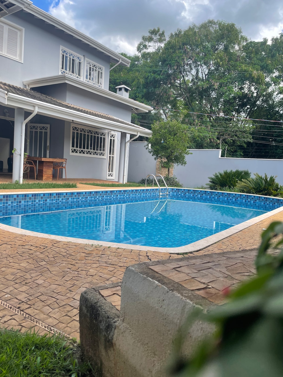 3 suítes 🛏️ Master: cama king + 2 beliches 🛏️ Suíte I: 2 camas de casal + 2 beliches 🛏️ Suíte II: cama de casal + 2 beliches 🌀 Quartos com ventilador de teto 🏊 Piscina aquecida solar (depende do clima) 🔥 Lareira externa aconchegante 🍴 Área gourmet - forno a lenha 🍕 Forno de pizza + churrasqueira 🎮 Videogame • 🎱 Sinuca • 🏓 Ping-pong 🤸 Cama elástica & parquinho infantil 🎾 Beach Tennis 🐾 Seu pet é bem-vindo 📍 Apenas 15 min de Jaguariúna Red Eventos - Espaço Ype - Holambra