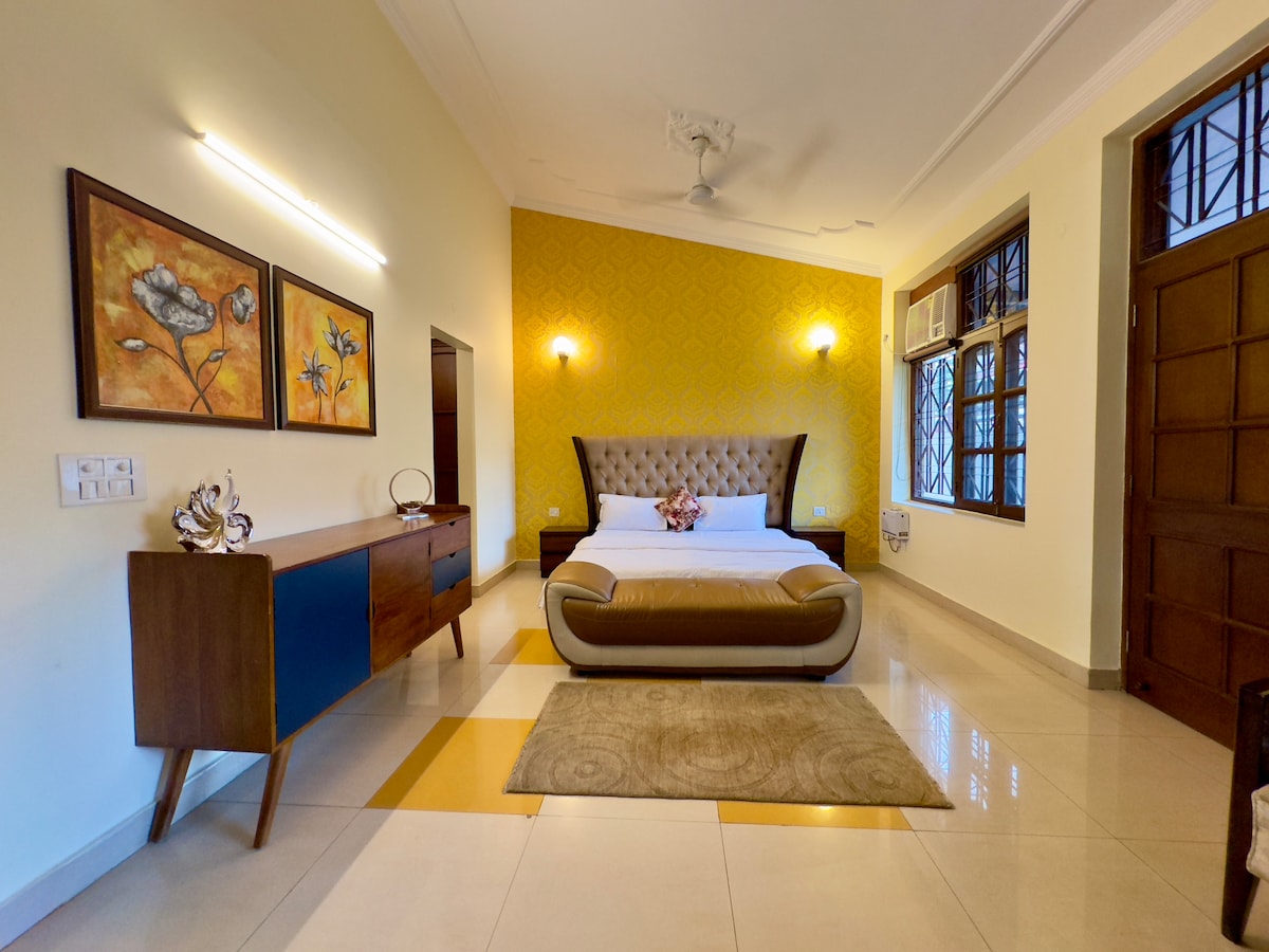 Poznaj nowoczesną, luksusową willę u podnóża Mussoorie, położoną przy Rajpur Road w Dehradun. To miejsce na wypoczynek przyjazne zwierzętom oferuje dwie sypialnie z łazienkami, przestronny salon z telewizorem i aneks kuchenny do przygotowywania prostych posiłków. Zrelaksuj się na rozległym trawniku lub baw się w pomieszczeniu, grając w tenis stołowy i piłkarzyki. Idealna dla rodzin, par lub przyjaciół, willa oferuje komfort, rekreację i łatwy dostęp do Mussoorie i Dehradun.