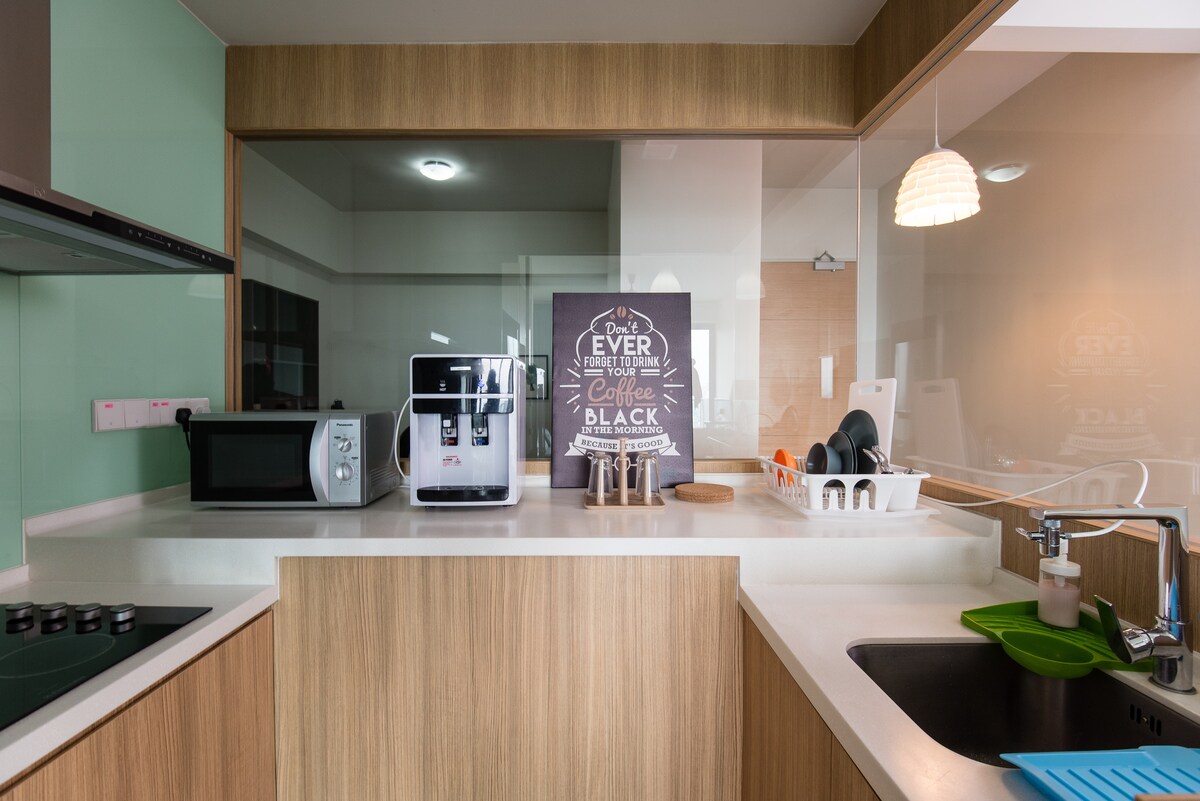 This corner unit is our best view unit! Enjoy a stylish experience at this centrally-located place. Best for 2 pax at this peaceful place to stay. At REVO, Aurora Place only a 1 min walk to the Pavilion Bukit Jalil shopping mall & it's near Bukit Jalil stadium. ✤FREE WIFI ✤FREE parking (1) ✤Clothes washer dryer ✤Water filter ✤Microwave ✤Electric Kettle ✤Induction cooker and pots ✤Spoons, forks, chopsticks, plates, and bowls ✤FREE rooftop swimming pool, & lifestyle gym