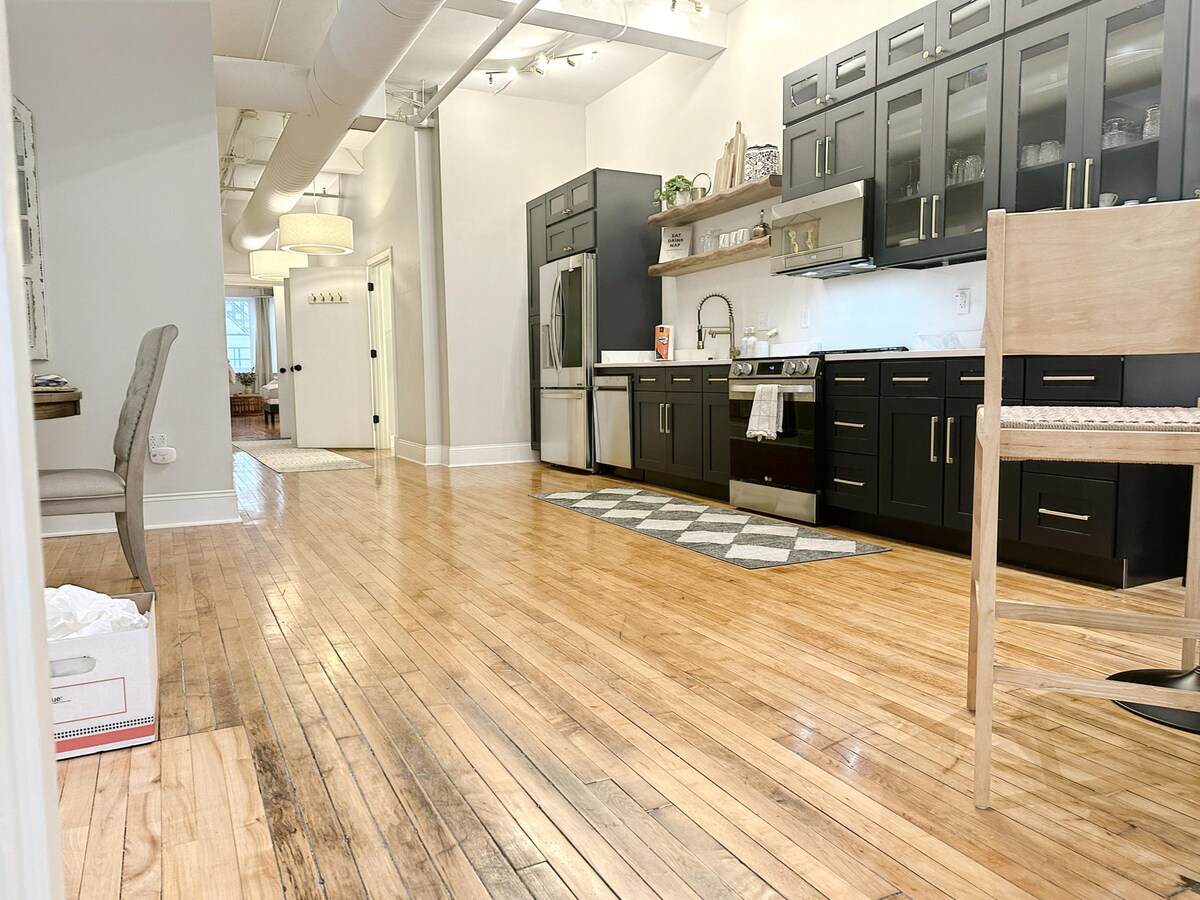 To zabytkowe mieszkanie zostało niedawno odnowione, aby połączyć nowoczesny design z rustykalnymi elementami. Jego eleganckie wnętrze jest podkreślone przez odsłoniętą cegłę, kwarcowe blaty, podłogi z twardego drewna i współczesne oprawy oświetleniowe Przestrzeń: bezkonkurencyjna lokalizacja, widok na panoramę miasta z najwyższego piętra. Łóżko typu KING SIZE na poddaszu i rozkładany materac typu QUEEN SIZE w głównej części salonu. PRZESTRZEŃ DO PRACY z wygodnym krzesłem z widokiem na Vine i 13th street. 40-calowy telewizor Smart TV w głównym salonie z Netflixem i szybkim internetem z Wi-Fi. Termostat Nest, pralka i suszarka, ekspres do kawy w zestawie. SAMODZIELNE ZAMELDOWANIE. BEZKONKURENCYJNA LOKALIZACJA, widok z najwyższego piętra na panoramę miasta. Łóżko typu KING SIZE na poddaszu i rozkładany materac typu QUEEN SIZE w głównym salonie. PRZESTRZEŃ DO PRACY z wygodnym krzesłem z widokiem na ulice Vine i 13th. 55-CALOWY TELEWIZOR SMART TV w głównym salonie z NETFLIXEM i SZYBKIM internetem z WI-FI. TERMOSTAT NEST (centralne ogrzewanie/powietrze) i wentylator sufitowy ze sterownikiem znajdującym się w głównym salonie oraz PRALKA I SUSZARKA. Keurig z kawą i herbatą K-Cups w cenie. SAMODZIELNE ZAMELDOWANIE. Parking zlokalizowany w garażu Ziegler Park za 8 USD dziennie lub Mercer Garage 10 USD dziennie (najbliżej) Dostępny przez telefon lub SMS, mieszkam 14 minut od apartamentu Centralna lokalizacja apartamentu znajduje się w odległości spaceru od niektórych pożądanych restauracji Cincinnati, tętniących życiem barów, browarów rzemieślniczych i ekskluzywnych sklepów. Wybierz się na spacer po pobliskim parku Waszyngton, zwiedzaj muzea i spędź dzień w zoo. Przystanek tramwajowy 2 przecznice dalej, 1 minuta spacerem do Vine Street, 3 minuty spacerem do Main Street. 1 mila do stadionów Reds/Bengals, 0,3 mili do kasyna, 0,5 mili do lokalnego rynku. Nasze inne mieszkanie: https://airbnb.com/h/courtcondogreatlocation Uber, Lyft, wypożyczalnie skuterów, spacery, tramwaj, wypożyczalnie czerwonych rowerów, a także bezpłatne przejazdy z GEST GOLF CARTS (Banki/OTR/Pendleton/Kasyno) – ZADZWOŃ, ABY UMÓWIĆ SIĘ (513-421-4378) lub machnij im!