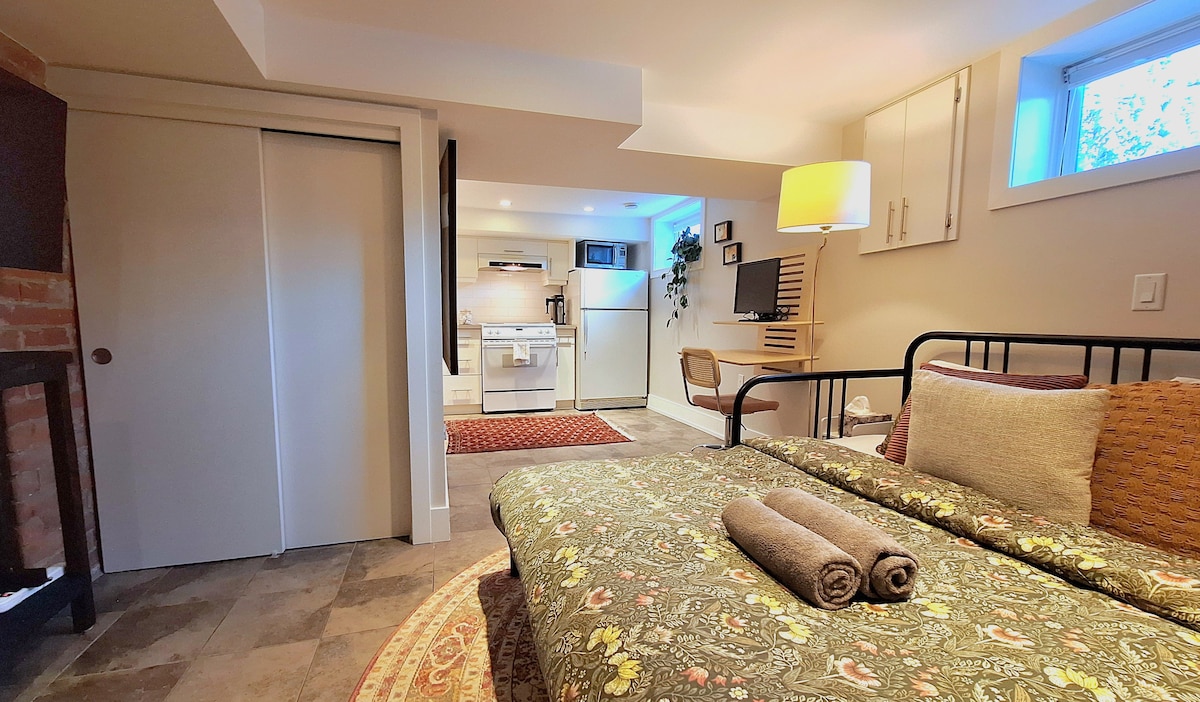 Goście uwielbiają ten uroczy, przytulny apartament w piwnicy o powierzchni 37 m² z łóżkiem typu king, pełną kuchnią i łazienką – idealny na wyjazdy służbowe lub wypoczynek. Szybkie Wi-Fi, miejsce pracy, samodzielne zameldowanie i bezpłatny parking kilka minut od centrum Calgary, Stampede, szpitali i uniwersytetów