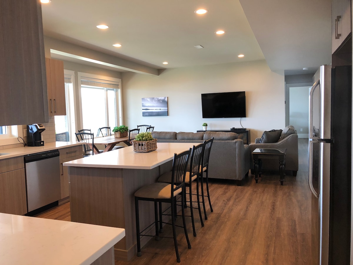 Nasz AIR-BNB jest w pełni licencjonowany przez miasto i prowincję, aby zapewnić bezpieczeństwo Twoich wakacji. Ciesz się panoramicznym widokiem na jezioro Okanagan na swoim prywatnym tarasie. Wyspij się w łóżku hotelowej jakości z wysokiej klasy świeżo wypranymi prześcieradłami i kołdrami. Dezynfekujemy cały apartament dla Ciebie. Odwiedź liczne restauracje lub przygotuj własne posiłki na grillu na świeżym powietrzu lub w pełni wyposażonej kuchni. Wiele wysokiej klasy udogodnień zapewni niezapomniane wakacje. Przepraszamy, ale nie przyjmujemy zwierząt
