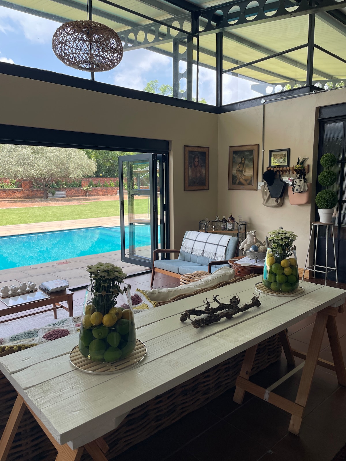 2026 dates are open — early booking recommended for special occasions. Designed for birthdays, anniversaries and calm resets, this peaceful Hartbeespoort escape offers privacy, space and effortless comfort. Relax in the wood-fired hot tub, enjoy pool days, and take in Magaliesberg mountain views from the covered stoep, ideal for sunset braais. Just 45 minutes from Johannesburg and Pretoria, Vallance Escapes Harties is thoughtfully designed and fully solar-powered for a seamless, relaxed stay.