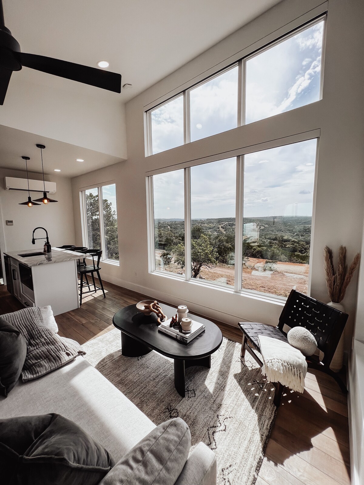 Welcome to our Ranch. Located on 180 Acres in Dripping Springs, the Nook Villa is a Relaxing Luxury Modern Home with all the amenities you could possibly need. Decorated Mid-Century Modern and accented by beautifully restored antique pieces. This home is built around the west-facing picturesque 180-degree stunning views showcased throughout the indoor and outdoor spaces. Relax on the large comfortable sofa, the luxury hot tub, or on the covered porch to take in the beautiful sunsets.