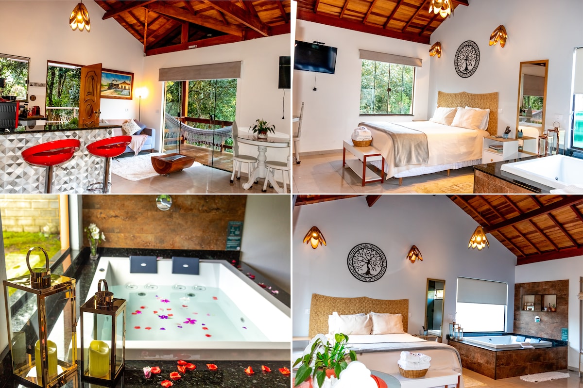 Odkryj magię Serra da Mantiqueira w tej chacie zaprojektowanej tak, abyś mógł podziwiać wschód słońca bez wstawania z łóżka. Zapraszamy do relaksu w naszym ogrzewanym spa, obserwowania gwiazd w wiszącej hamaku i na huśtawce. W domku znajduje się zintegrowana sypialnia z przytulnym łóżkiem typu Queen. W salonie/kuchni znajduje się bardzo wygodny futon dla dwóch osób, dzięki czemu jest to idealne miejsce dla rodzin. Na terenie obiektu znajdują się również szlaki i małe wodospady. To miejsce jest wyjątkowym azylem.