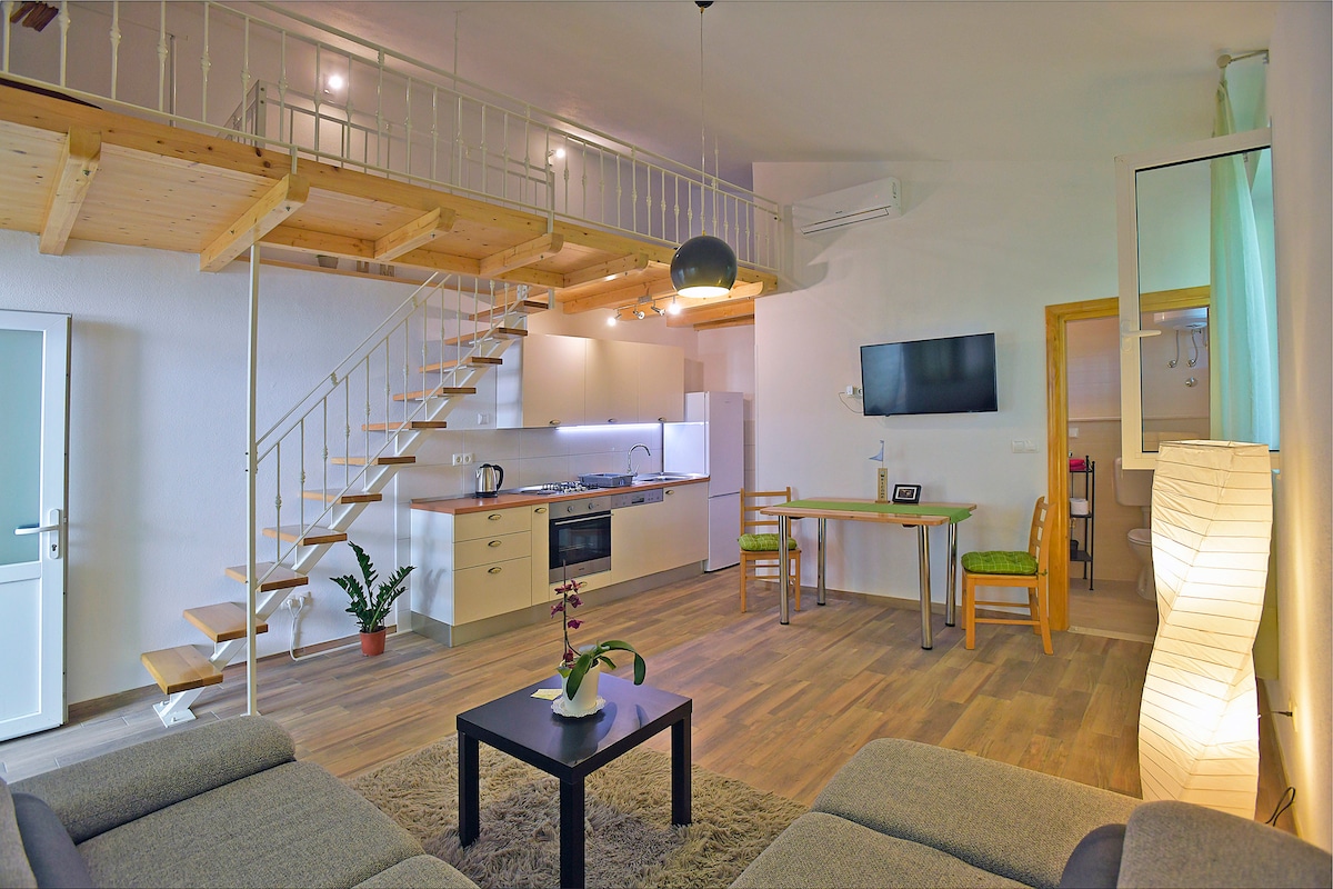 Wejdź do komfortu tego pięknego apartamentu z 1 sypialnią, z wyjątkowymi udogodnieniami w Hvar. Nieruchomość jest idealnie położona w spokojnej i bezpiecznej okolicy, a także w dobrze skomunikowanej lokalizacji z głównym placem i centrum miasta (5 minut). Ten nowo odnowiony apartament na antresoli wyróżnia się udogodnieniami, które obejmują bezpłatny parking przed domem, prywatny, ogrodzony ogród, klimatyzację, szybkie Wi-Fi, w pełni wyposażoną kuchnię i, co nie mniej ważne, doskonałą lokalizację.
