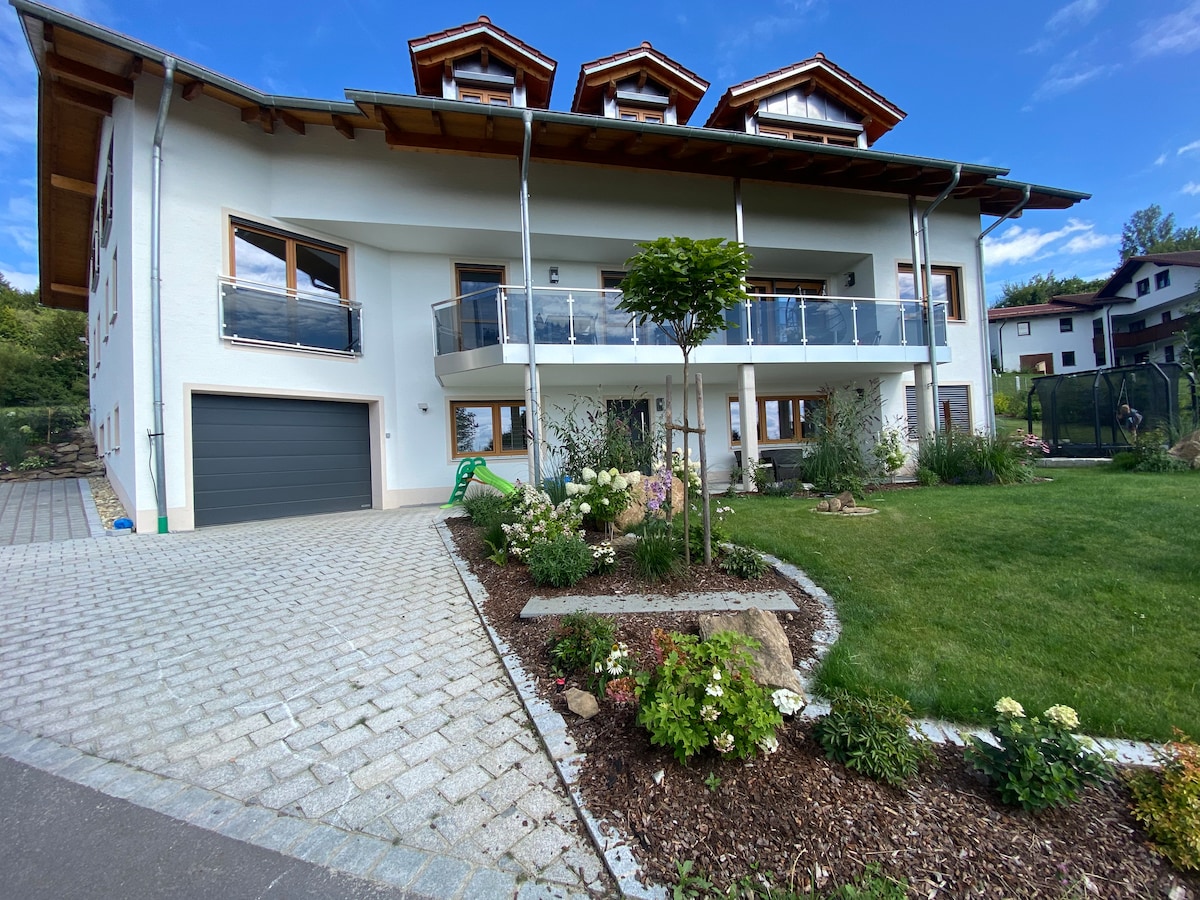 Spokojne dni na łonie natury, z dala od stresu i zgiełku. Czas dla dwojga lub z rodziną, dla zakochanych, dla potrzebujących odpoczynku i miłośników przyrody… po prostu się wyłącz… możesz to zrobić wspaniale w apartamencie na naszej małej farmie w malowniczym Lesie Bawarskim. Z gospodarstwa można wybrać się na pieszą lub rowerową wycieczkę. Konzell, oddalone o 3 km, należy do regionu wakacyjnego St. Englmar, ale Park Narodowy Lasu Bawarskiego lub miasta Straubing, Ratyzbona, Pasawa również nie są daleko.