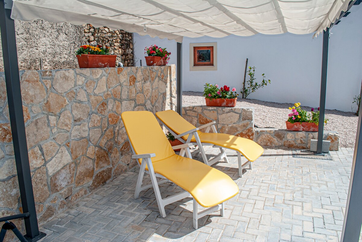 Przestronny, niezależny dom z dużym oknem na prywatny taras, ogród i wspólny basen. Posiada w pełni wyposażoną kuchnię i oddzielną sypialnię z tarasem z widokiem na góry i dolinę. W salonie znajdują się również 2 pojedyncze łóżka. Izolowany korkiem i drewnem, ma ogrzewaną podłogę, kominek i wymuszoną wentylację gorącego lub zimnego powietrza. Pościel i ręcznik do opcjonalnego łóżeczka dziecięcego kosztuje dodatkowo 10 euro za noc.