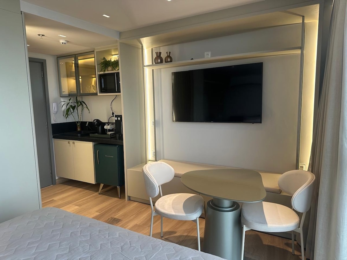 To mieszkanie w Cabo Branco oferuje wyjątkowy pobyt z widokiem na morze. Wyposażona w pełną kuchnię, w tym płytę kuchenną i przybory kuchenne, zapewnia praktyczność. W pokoju znajduje się 55-calowy telewizor SmartTV, a także udogodnienia takie jak żelazko, suszarka do włosów, kuchenka mikrofalowa, lodówka, opiekacz do kanapek, oczyszczacz wody i ekspres do kawy Nespresso. Duże okno pozwala cieszyć się oszałamiającym krajobrazem oceanu. Idealne na podróże służbowe lub rekreacyjne, to mieszkanie oferuje luksus i wygodę w jednym miejscu.