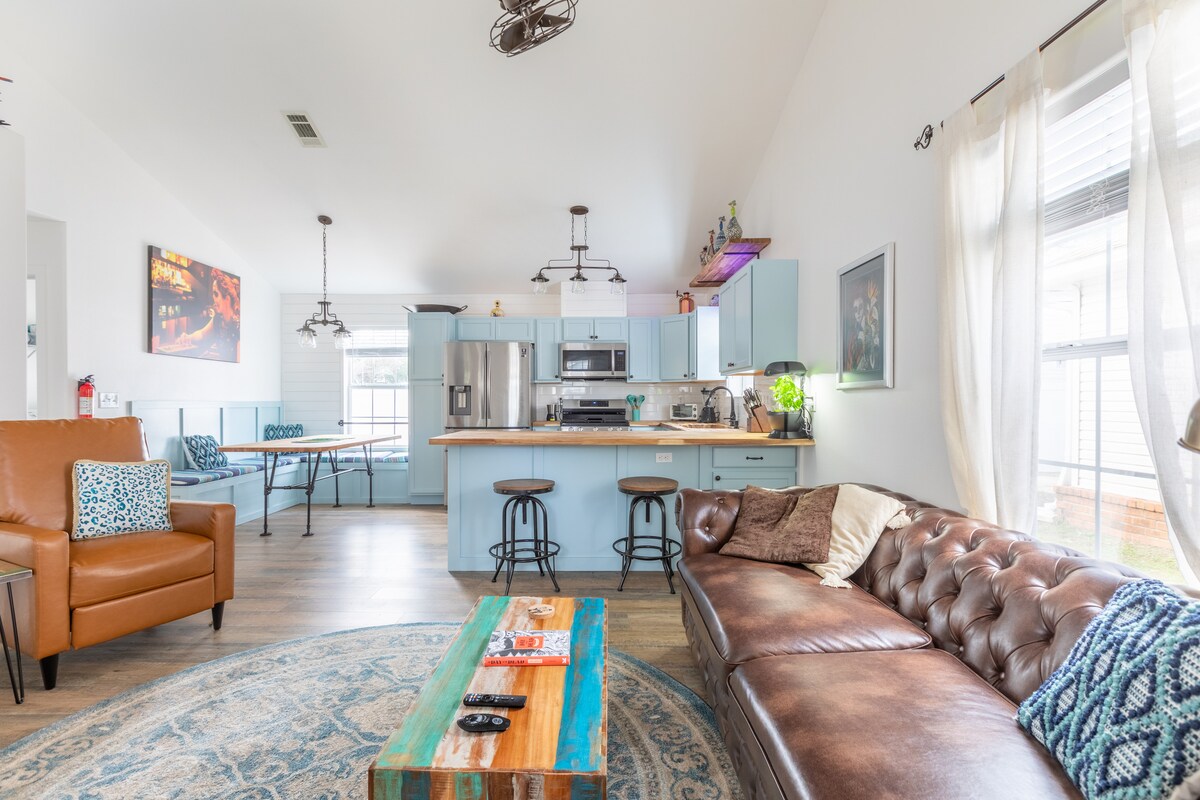 Witamy w Aspen at The Oasis! Zieleń otaczająca tę małą chatkę sprawia, że czujesz się jak na wsi, ale tylko kilka minut do centrum miasta, sklepów, restauracji, centrum handlowego i lotniska PNS. Plaża Pensacola znajduje się zaledwie 20 minut drogi stąd. Udogodnienia obejmują pełną kuchnię, duży taras, WiFi, telewizor Roku z Netflixem, pralkę/suszarkę i ekspres do kawy Keurig. Ciesz się spokojnym pobytem z rozsądnymi opłatami za sprzątanie i brakiem odpowiedzialności!