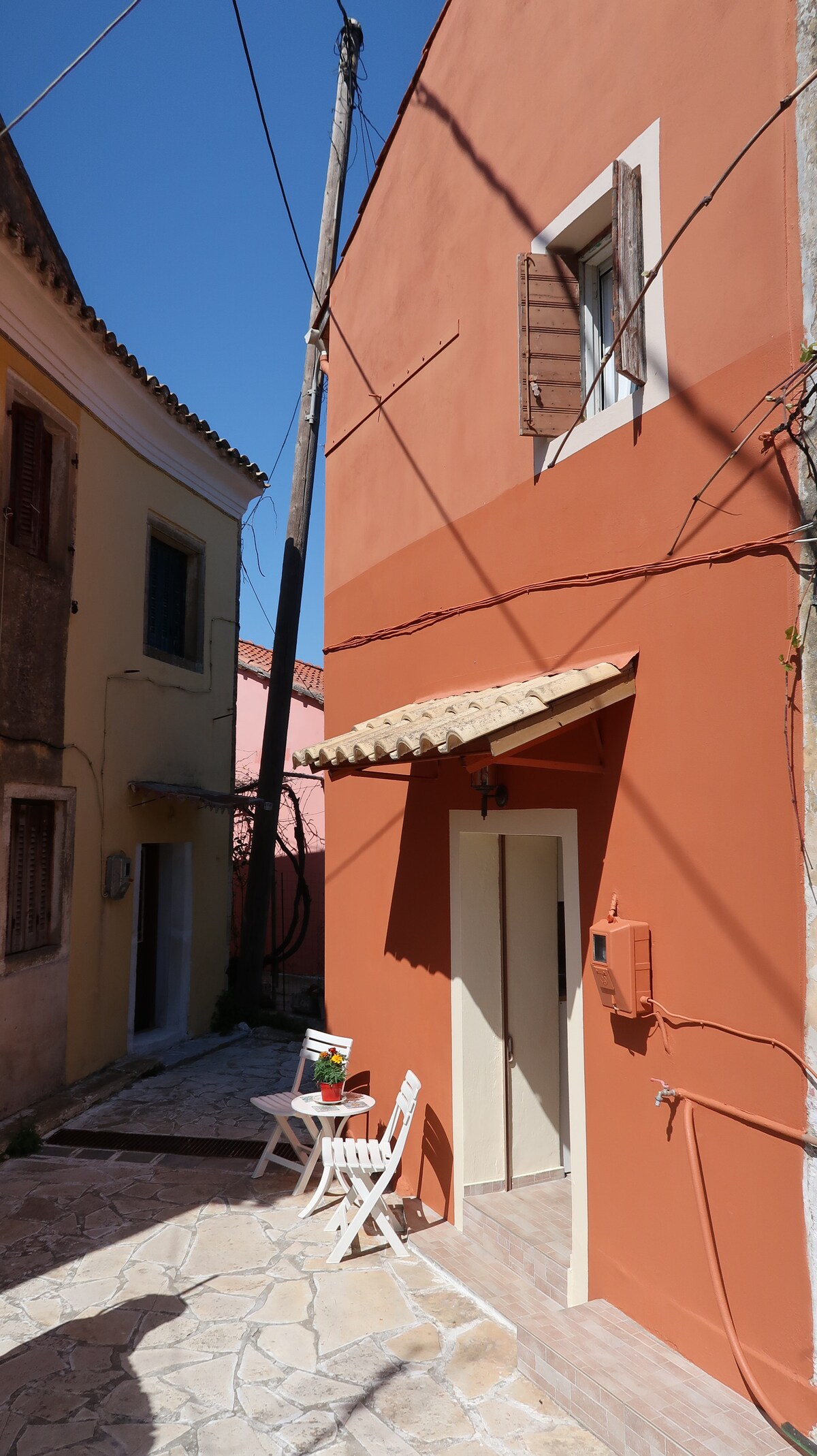 Nasz dom znajduje się na placu zabytkowej wioski Kamara. Jest to mały, tradycyjny dom o powierzchni 20 metrów kwadratowych, który zapewnia naszym gościom wszystkie wygody i spokój tradycyjnej wioski. Aby podróżować po wyspie, potrzebny będzie samochód lub motocykl. Możemy udzielić Ci informacji na temat wynajmu. Z naszego domu w odległości 800 metrów przejeżdża, mniej więcej co dwie godziny, autobus do miasta Korfu, a w odległości 1300 metrów przejeżdża autobus do wspaniałej plaży Ag. Gordios.
