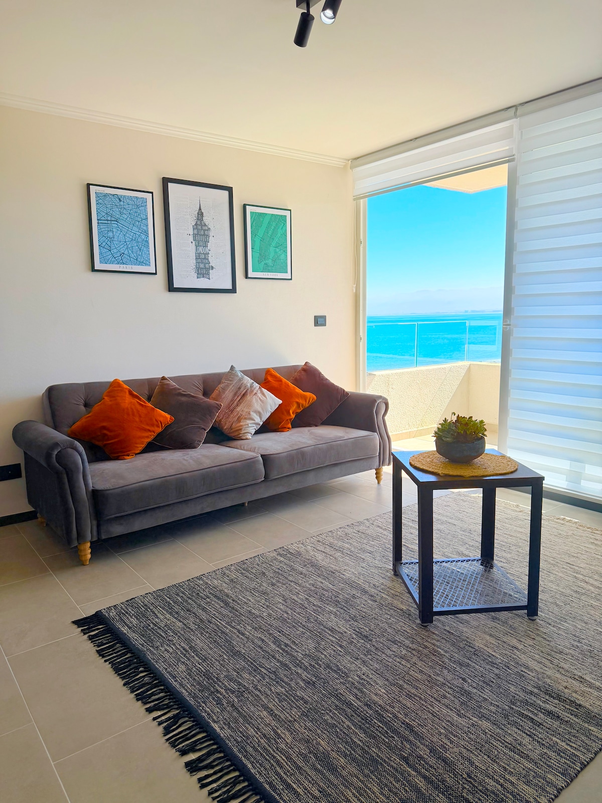Przy morzu, w pierwszej linii plaży, obok kasyna Enjoy. Bezpośredni widok na morze. Budynek ze wszystkimi udogodnieniami, basenami, siłownią, pralnią, całodobową bramą, zadaszonym parkingiem. Kilka kroków od najlepszych restauracji, minimarketów, ścieżek rowerowych i 20 minut od lotniska w Coquimbo. W pełni wyposażone mieszkanie z 3 pokojami dla 6 osób. Telewizja kablowa, internet, wyposażona kuchnia, jacuzzi w głównej sypialni, pościel i ręczniki.