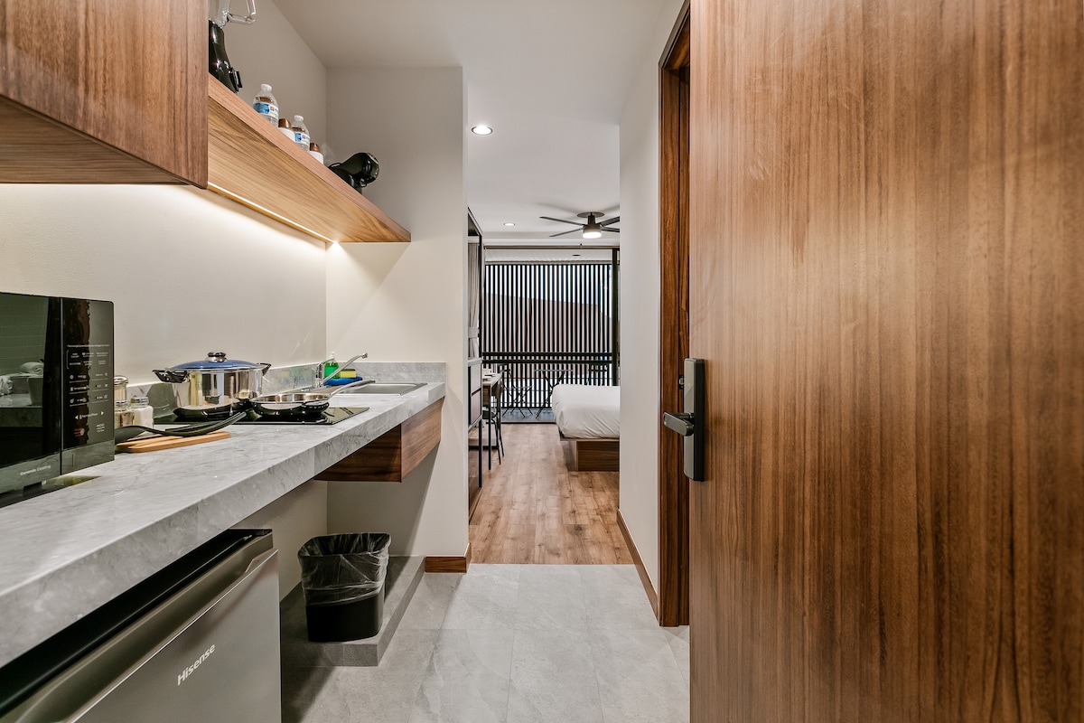 Apartament jest wyposażony tak, aby zapewnić najwyższy komfort. Odpocznij w swoim łóżku z materacem z pianki termoplastycznej, oglądając film na telewizorze Smart TV, korzystając z szybkiego Wi-Fi. Ciesz się przyjemną kąpielą pod prysznicem z wysokiej jakości wykończeniem. Przygotuj posiłki w w pełni wyposażonej kuchni. Pracuj bez zmartwień przy biurku – mamy szybkie Wi-Fi
