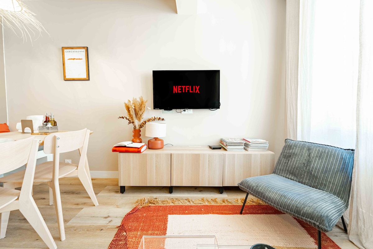 U stóp murów obronnych i nieco sekretnych schodów prowadzących do serca średniowiecznego miasta, nasz uroczy, w pełni odnowiony i wyposażony dom jest idealny dla Twojej rodziny! W pełni wykorzystasz ten wspaniały pomnik i zrelaksujesz się w spokojnym i wygodnym miejscu ze staranną dekoracją. Każda z dwóch sypialni ma własną łazienkę (prysznic) i ekran telewizyjny, tak jak w hotelu.