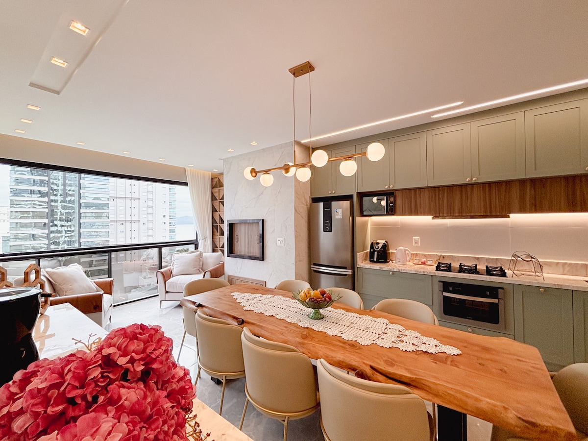 Lounge Apartment, located in Brava Beach and 10 minutes from Balneário Camboriú. The location is perfect. Only 5 blocks from Beach. Close all parties and restaurants. Condo with complete infra, Pool, Gym, Steam and 4 Barbecues. The apartment has Mountain-facing Jacuzzi with hydro and chromotherapy. Ideal for relaxing or take a romantic time. It has 58 'smart TV in the living room and 40' in the bedroom. Full kitchen. Machine washes and dries. You will love this place.