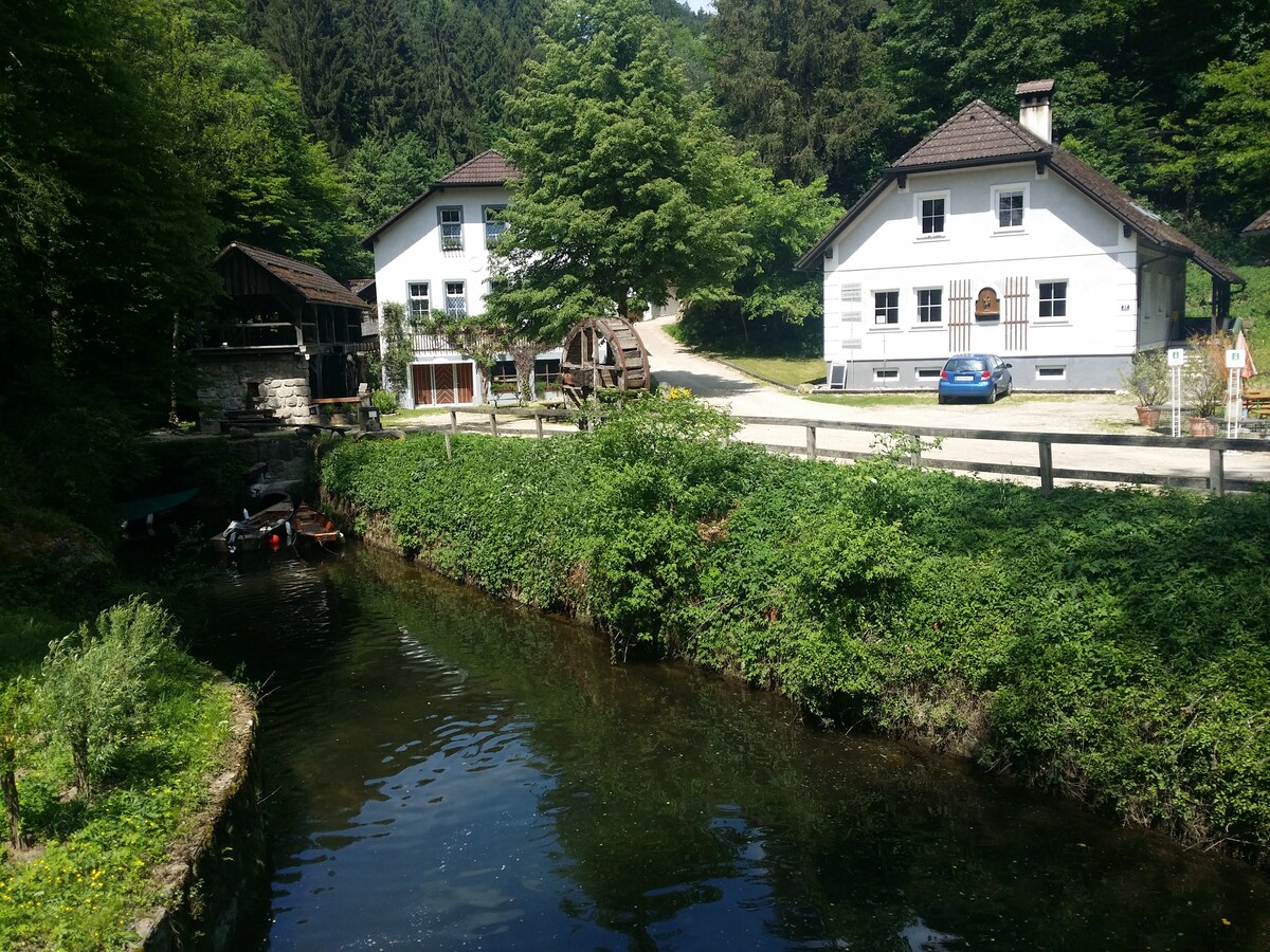 Uroczy mały domek otoczony zielenią – oaza spokoju! Bogato wyposażone zakwaterowanie jest idealną bazą wypadową dla „ekspedycji” do regionu Mühlviertel i Linz. Apartament ten jest idealną bazą wypadową dla wycieczek samochodem, motocyklem, rowerem, rowerem górskim - w pobliżu Linz (20 min. samochodem). Szybkie Wi-Fi, parking, prywatny dostęp, otwarty kominek na zewnątrz i przytulny piec na pelety w środku, istniejący staw kąpielowy może być współdzielony.