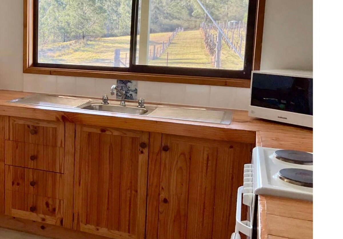 Przytulny, wypełniony słońcem domek z cegły mułowej z 2 sypialniami. Widok na las, odległe góry, wzgórza i pastwiska. Relaksujący wypoczynek – wygodny i kreatywnie rustykalny z artystycznymi akcentami. Telewizja, Netflix i darmowe Wi-Fi. Dobry zasięg telefonii komórkowej. Zbiornik na wodę deszczową, otwarty kominek, drewno opałowe. Przyjazne dla zwierząt, z bezpiecznym ogrodzeniem z tyłu domu, jeśli to konieczne. Piękne ogrody. Łatwy dostęp dla wózków inwalidzkich. Gospodarz w pobliżu, aby uzyskać lokalne informacje i pomoc, jeśli jest to wymagane.