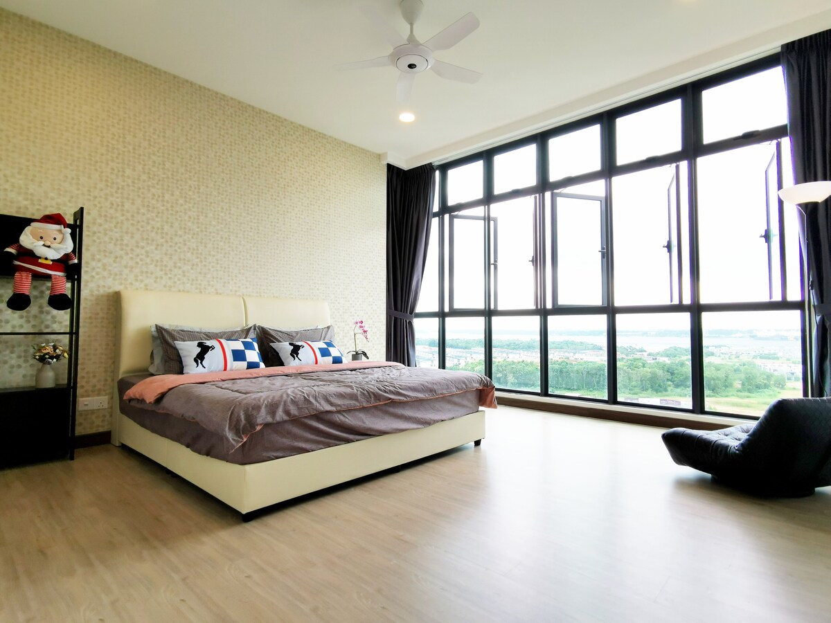Luksusowy przestronny apartament z 3 sypialniami i wanną! Najwyższej jakości łóżka typu King & Queen, które gwarantują dobry sen z niesamowitym widokiem na Midvalley Southkey Mall! Główne wyróżnienie! - Prywatna wanna -65" Smart TV z aplikacjami YouTube i Netflix - Stół basenowy -Retro Game Console - Dozownik wody pitnej Otoczenie z centrum handlowym i szeroką gamą lokalnych smacznych potraw - 2 minuty jazdy do Midvalley Southkey JB - 5 minut do KSL City Mall - 8 minut do City Square Mall & Custom JB