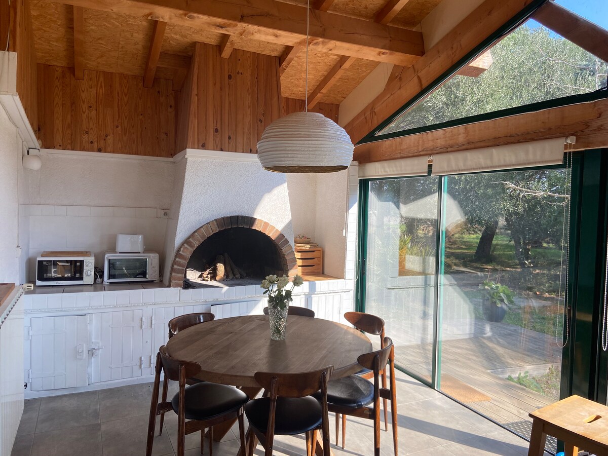 🌿 Między morzem, górami i jeziorami Uroczy, jasny domek z salonym w stylu katedry, panoramicznymi widokami na Albères, 2 przytulnymi sypialniami i prywatnym tarasem o powierzchni 20 m², położony naprzeciwko Voie Verte, gdzie można spacerować. Idealna lokalizacja, naturalne otoczenie bardzo łatwo dostępne samochodem: 20 minut od morza, blisko Céret, Collioure, Hiszpania… Dom rodzinny typu gîte = brak usług hotelarskich ✨Stawki za leczenie zdrowia ✨ 🧖♀️ Opcjonalnie: sauna / pościel / sprzątanie ▶️ Warunki i przyjazdy -> Przeczytaj „Mój dom” 🙏 Nie mogę się doczekać, aż Cię ugozczę 🌿