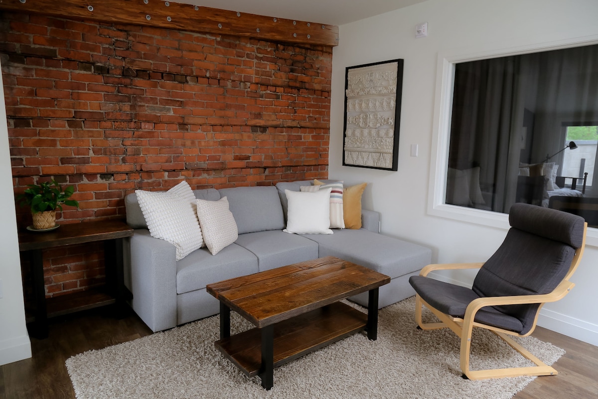 Jasny i przestronny apartament 2BR w centrum Seaforth z naturalnymi drewnianymi belkami, ścianami z stodoły i przytulnym kominkiem gazowym. Pełne światła z otwartym układem do relaksu lub rozrywki. Przemyślany wystrój z myślą o ciepło i wygodzie. Znajduje się nad centrum odnowy biologicznej i zaledwie kilka kroków od sklepów i restauracji. Idealna baza wypadowa na wesela, lokalne wydarzenia lub jednodniowe wycieczki do Bayfield i pobliskich winiarni. Ciepła i spokojna przestrzeń do relaksu i relaksu.