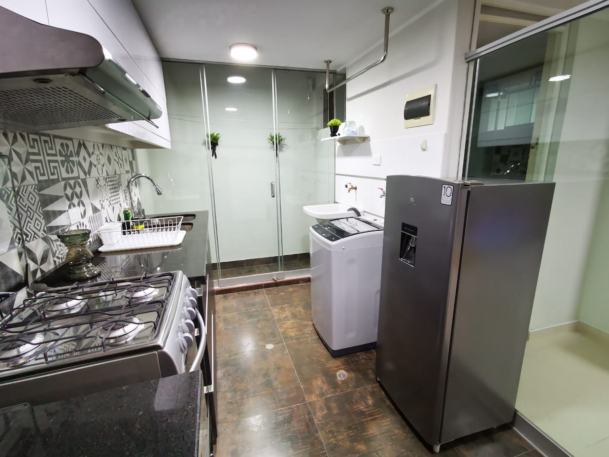 Zrelaksuj się w tej cichej i eleganckiej przestrzeni. Będziesz mieć najlepszy zachód słońca Arequipa z uroczego balkonu, w najbardziej ekskluzywnej dzielnicy Cayma. Zapraszamy do odwiedzenia tego przytulnego mini apartamentu położonego w prywatnym kondominium z windą, trzy przecznice od Plaza de Cayma i najlepszych centrów handlowych, banków i restauracji w mieście. Mamy Netflixa za darmo!