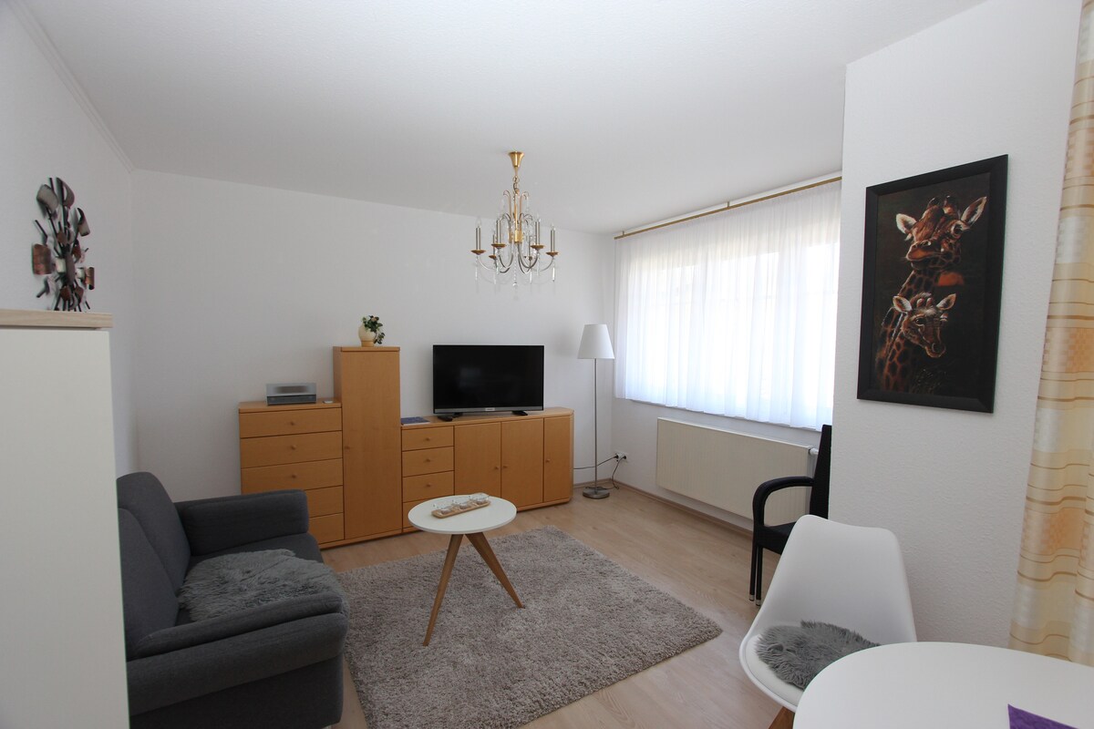 Witamy w naszym uroczym dwupoziomowym apartamencie – idealnym miejscu na niezapomniany pobyt w idyllicznym uzdrowisku Bad Saarow. Centralna lokalizacja pozwala w pełni cieszyć się malowniczą przyrodą i piękną okolicą. Kilka kroków dzieli Cię od Saarow-Therme i Scharmützelsee. Apartament znajduje się w centrum spa, więc w zaledwie kilka minut spacerem można dotrzeć do restauracji, kawiarni i różnorodnych sklepów.