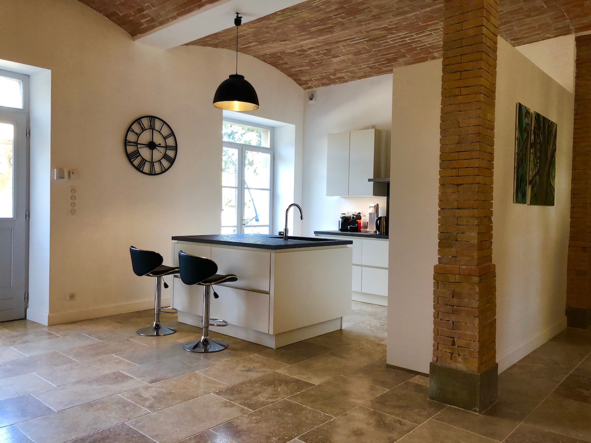 Situé au cœur du Minervois, dans le centre historique du village de Caunes Minervois, la Maison 5 est l'endroit idéal pour vivre paisiblement ses vacances. Elle est une invitation à la douceur de vivre. Proche de la cité médiévale de Carcassonne, au pied de la Montagne Noire et à 40 minutes des premières plages de la Méditerranée, elle est parfaite comme point de base aux visites dans la région. Elle peut l’être aussi pour une halte lors d'un déplacement professionnel de par sa fonctionnalité.
