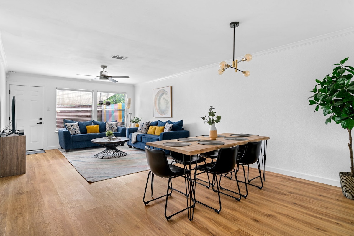 Austin Getaway! Nowo wyremontowany dom idealny na rodzinne podróże, pobyty służbowe i nie tylko! Co Ci się spodoba: - Duże łóżko: zrelaksuj się po zwiedzaniu. - Ogrodzone podwórko i taras: prywatna przestrzeń na zewnątrz. - Wyposażona kuchnia: gotuj z łatwością. - Pralka i suszarka: idealne na dłuższe pobyty. - Szybkie Wi-Fi: pozostań w kontakcie. Lokalizacja: - 5 min: sklepy spożywcze. - 14 min: The Domain. - 20 min: Downtown & Airport.