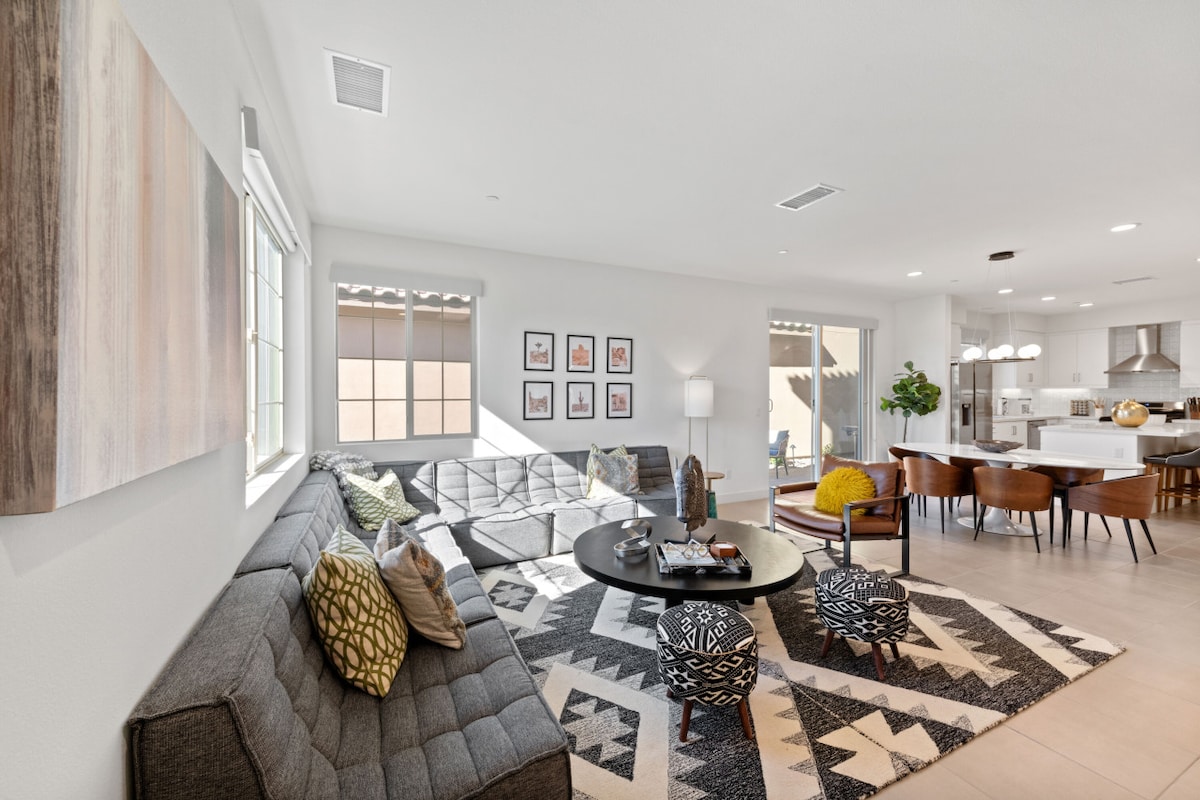 Welcome to our brand new home in PGA West, La Quinta! The Urban Oasis is designed as a place to relax & get away. Enjoy during your stay: Large smart TVs in every room Extremely comfortable couches Outdoor BBQ, dining table, & fire pit Community pool, gym, & hot tub Dedicated workspace 2-car garage Its close to (in miles): Old Town La Quinta (4) Coachella & Stagecoach Music Festivals (5) Indian Wells Tennis Gardens (7) The Living Desert (12) Palm Springs (28) Joshua Tree National Park (33)