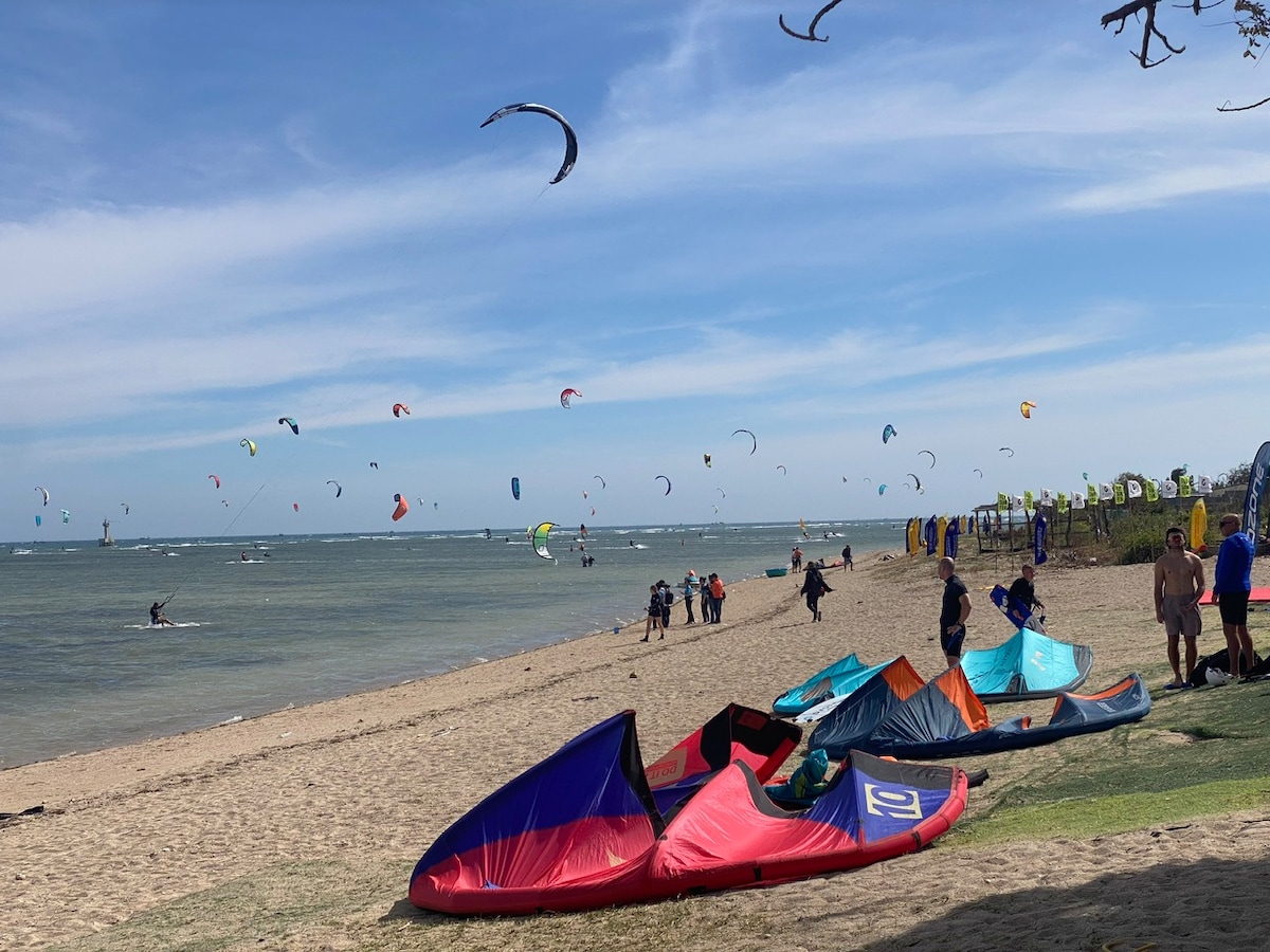 Spokojny otwarty dom z oknami dla miłośników przyrody. - Dostępny: 5 minut spacerem do najbliższej plaży, 5 minut jazdy do centrum miasta, 15 minut jazdy do miejsc na latawcach, łatwy dojazd do atrakcji - Cisza: dźwiękoszczelna, położona wewnątrz ogrodu owocowego - Bezpieczne i wygodne: kamera na zewnątrz, zamykana szafa, zadbany o prywatność - Usługi: woda pitna, czyszczenie i zmiana pościeli - Wsparcie: zakup karty SIM/danych, wynajem samochodów i rowerów i nie tylko