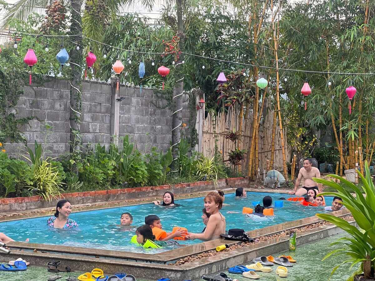⁃ Villa thuộc trung tâm mũi né, cách biển và phố tây 900m ⁃ Villa gồm 8 giường lớn, 1p 3 giường,1p 2 giường ,3p 1 giường 1m8-2m .Các phòng đều wc khép kín và 1wc chung - Bể bơi riêng lớn, ghế ngồi thư giãn chill chill ⁃ Bếp: nồi, chảo, chén dĩa, ly cốc, tủ lạnh 2 cánh lớn, lò vi sóng, nồi chiên ,nướng ,bếp từ ⁃ BBQ hiện đại ⁃ Sân chơi lớn, khuôn viên cực rộng phủ cỏ xanh mướt, bàn chơi Bida tiêu chuẩn clb ⁃ Loa karaoke ,tivi giải trí 85inc phòng khách và 55inc phòng ngủ