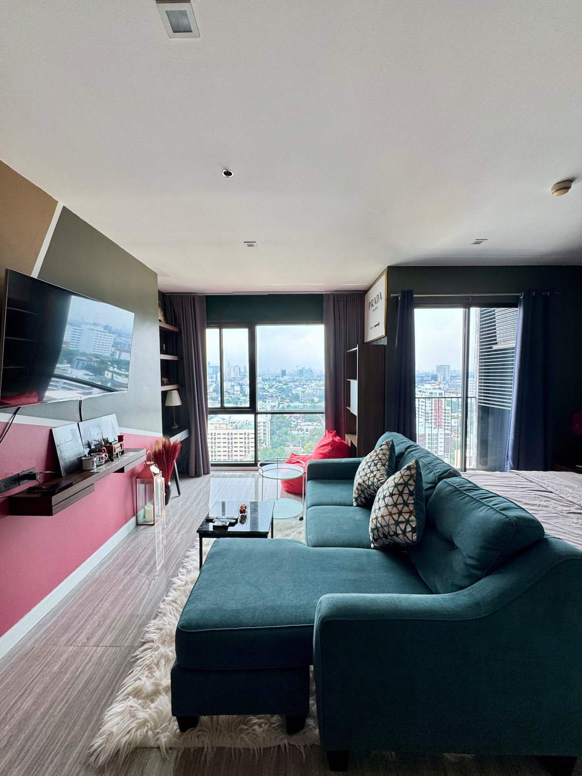 Doświadcz nowoczesnego komfortu w naszym świeżo odnowionym pokoju, zaledwie kilka kroków od BTS Ari. Ciesz się pięknym widokiem na miasto i zachód słońca z dużych okien, idealne na relaks po dniu spędzonym na zwiedzaniu Bangkoku. Nasza przestrzeń jest wyposażona w wystrój z połowy wieku, przytulne łóżko typu king size i spokojną atmosferę. Dogodnie położona w pobliżu modnych kawiarni, lokalnych targowisk i transportu publicznego, jest idealna dla miejskich odkrywców szukających szykownego wypoczynku w samym sercu miasta.