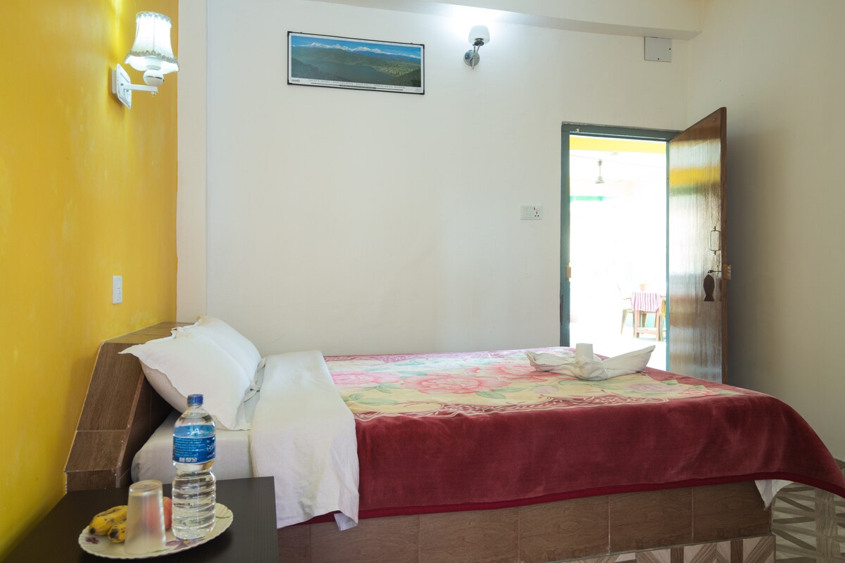 Ten pokój znajduje się na najwyższym piętrze z pięknym i wspaniałym widokiem na jezioro Fewa i zielone góry.Posiada szeroki taras i balkon i łóżko małżeńskie queen size. Możesz również enoy zachód słońca wieczorem i miasta i rparagliding lądowania i orzeł latający widok. mamy 2 pokoje tego typuCiesz się wakacjami na specjalne miejsce.