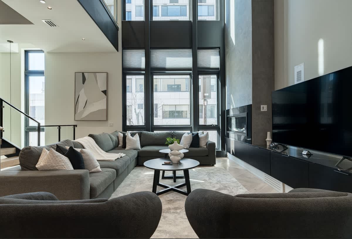 Hosted by StayRafa. This 5,300 SQF, five-story fortress comes with an elevator, hot tub, & panoramic city views - a stay fit for rock & roll royalty. No expense spared, from the outdoor grill & 3-car garage to the gourmet esp machine in the Master Suite. Indulge in a 2-person shower the size of a studio apt., unwind in the steam room, & bask in the luxury of thick wooden doors that makes leaving feel optional. 5 Stories Hot Tub Steam Room 4 BDR / 6 BA 2 hotel style cots Sleeps 10 comfortably.
