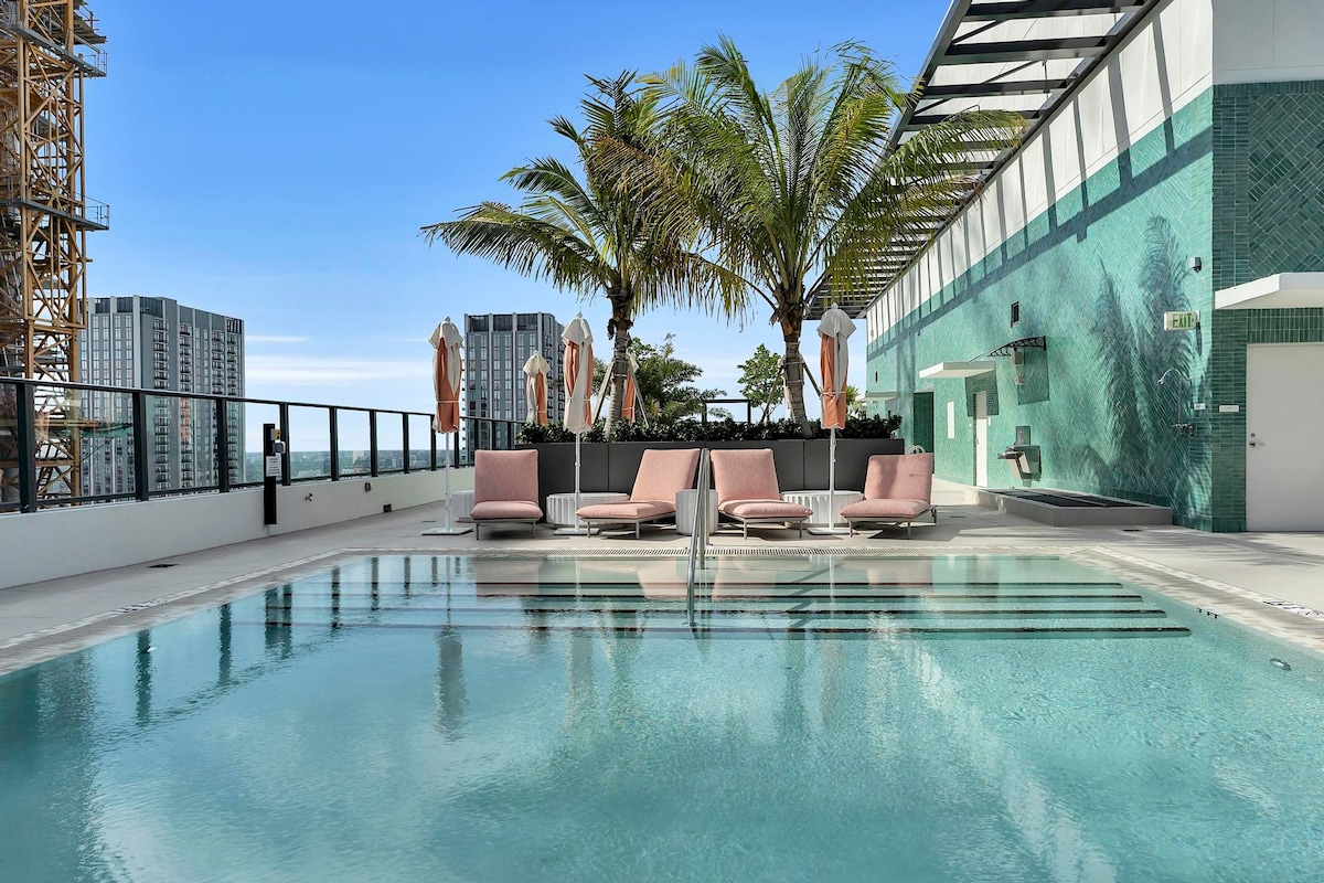 Nowe mieszkanie 2BR/2BA w centrum Miami | Basen na dachu, balkon