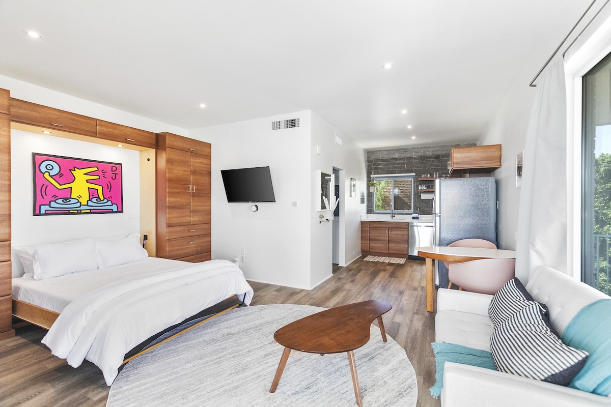 Jewelbox to PRYWATNE, błyszczące studio GLAM z kryształowymi, złotymi i srebrnymi akcentami. MAŁY rozmiar: DUŻY styl i komfort Posiada łóżko typu Queen, prywatną łazienkę, kuchenkę mikrofalową, palnik elektryczny, ekspres do kawy, naczynia/sztućce, żelazko z mini deską, parking poza ulicą Jest biurko, Wi-Fi i LAN Będziesz czuć się komfortowo dzięki nowej klimatyzacji/ogrzewaniu z pilotem Inteligentny telewizor przechyla się i obraca, aby oglądać z dowolnego miejsca, przesyłać strumieniowo Amazon, Netflix itp. 2 stoły na patio na dziedzińcu do użytku. Licencja STR-2025-000553