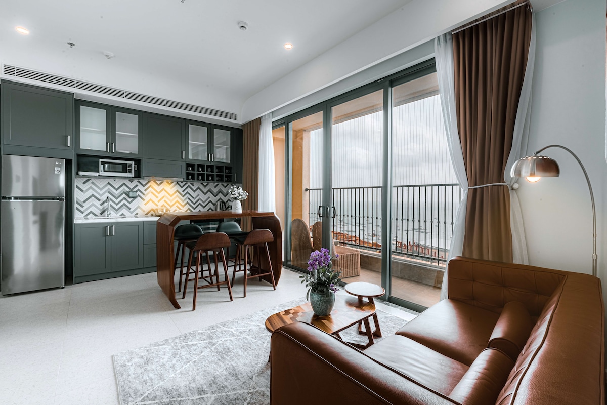 Mieszkanie ma 2 piękne balkon z widokiem na morze, 2 duże okna w kuchni, a stół z widokiem na morze jest naprawdę imponujący, lokalizacja znajduje się u podnóża „Bridge Kiss”, naprzeciwko Starbuck. - Główna sypialnia ma 1 duże okno z widokiem na morze, 1 duże okno z widokiem na miasto. Dodatkowa sypialnia ma duże okno z pięknym widokiem na miasto - Oglądaj pokaz Vortex i fajerwerki - Kilka kroków do centralnej plaży