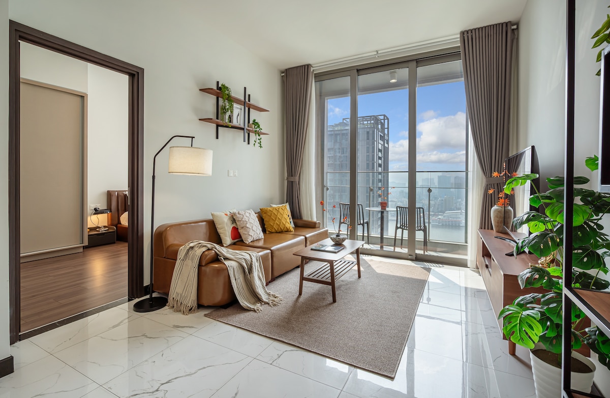 Spend your days in comfort and style in this modern 2beds1bath unit! Whether it's a short vacation, a work trip or a long-term reservation, this has all the amenities needed for a comfortable stay. - Bordering D4, city center 15mins, LotteMart 10mins, Phu My Hung/KoreaTown 5mins - All rooms have window walls with plenty of natural light - Breezy balcony, cozy living room, comfy beds - Equipped w/ a full kitchen, in-unit laundry, fast wifi, netflix, free gym&pool