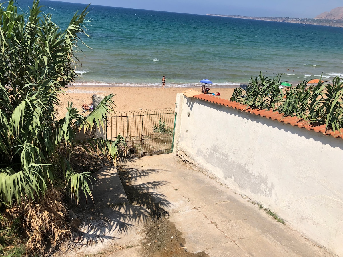 Beautiful independent villa at 100 metres from the beach, in Trappeto near Palermo in Sicily. The immediate proximity to the sea allows you to easily walk to the beach made of fine sand suitable especially for children. The villa has two double bedroom, a twin bedroom, bathroom, and kitchen. Outside, large spaces, both at the front of the house and at the back with an additional built-in kitchen, bathroom and shower. Two covered verandas and a large garden. Free wi-fi unlimited.