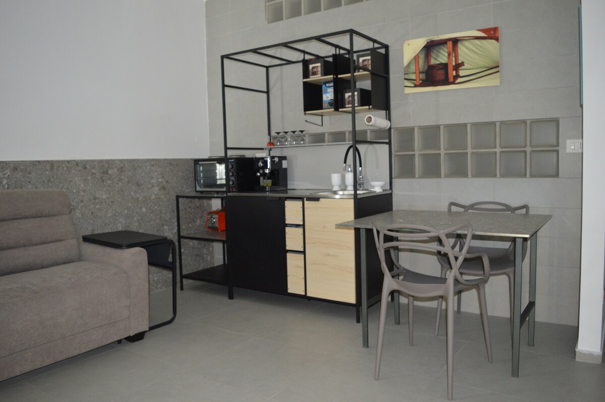 Przytulna przestrzeń typu open space o powierzchni 30 m², położona na pierwszym piętrze zabytkowego budynku z XVIII wieku. Widok na dziedziniec. Dom wyposażony jest we wszystkie udogodnienia niezbędne do spędzenia relaksujących wakacji. Kuchnia jest wyposażona tak, aby można było z niej korzystać i cieszyć się nią jak w domu. W pobliżu znajdują się najlepsze pizzerie na świecie, w odległości 50 metrów są restauracje, bary, puby, targi spożywcze, apteki. Słynna ulica „Pastori” San Gregorio Armeno znajduje się w odległości zaledwie 150 metrów.