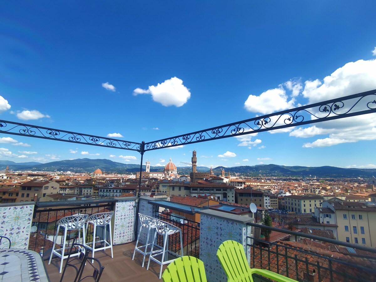 Krótki spacer od Ponte Vecchio, w sercu miasta. Dom posiada dwa umeblowane tarasy panoramiczne, jeden z widokiem 360 stopni, sugestywne doświadczenie. Lunch ,opalanie i podziwiaj ten niesamowity widok, w pobliżu głównych atrakcji miasta. Bo jesteś w centrum miasta. Dom znajduje się wewnątrz kondominium, choć posiada duży ogród, prywatny i ekskluzywny, tarasy i poddasze. Dom znajduje się na trzecim piętrze bez windy